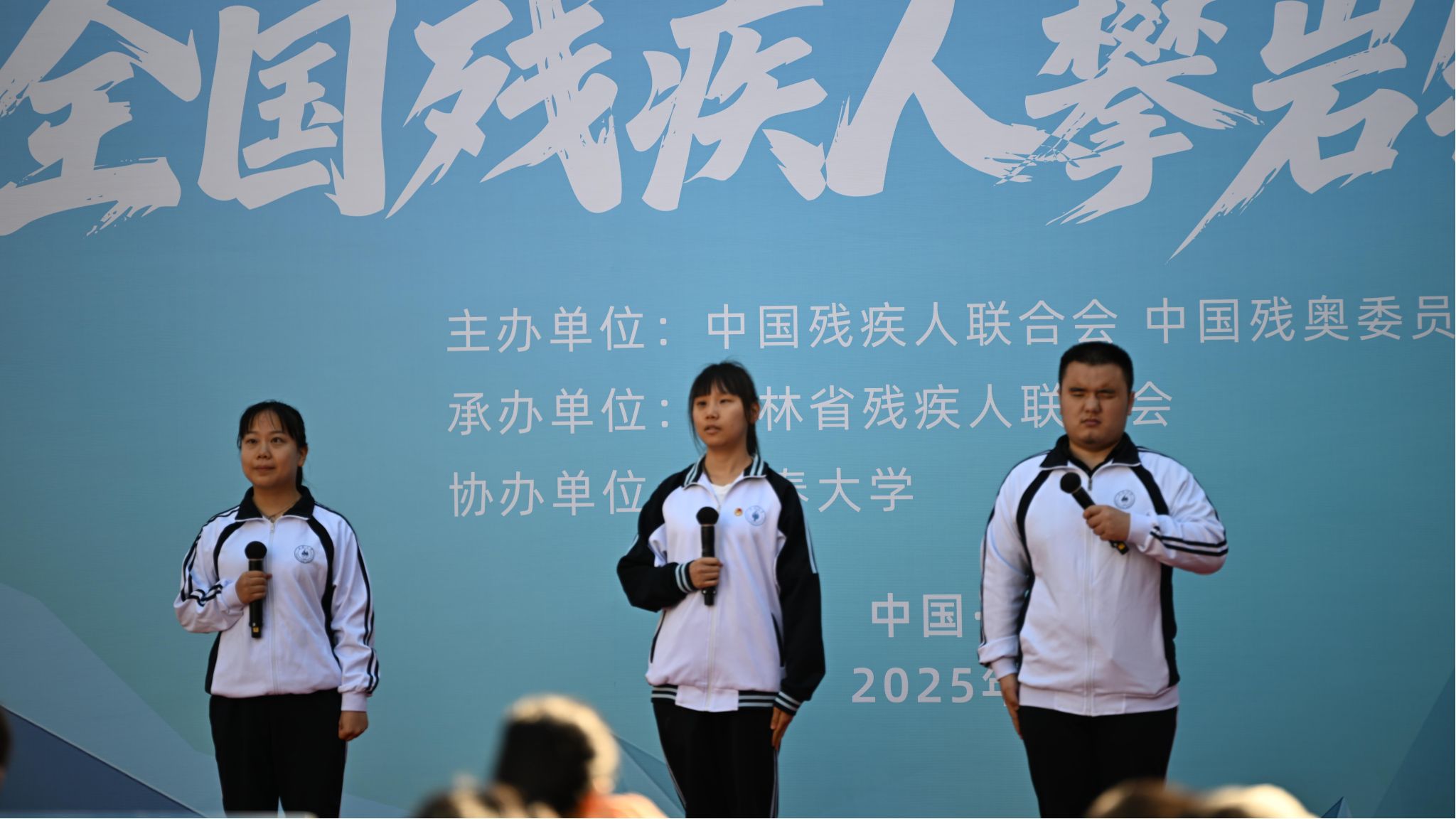 9月15日,由中国残联、中国残奥委主办,吉林省残联承办,长春大学协办的全国残疾人攀岩锦标赛在我校开赛。中国残联体育部副主任马历涛,吉林省残联党组书记、理事长李继东,吉林省残联二级巡视员姚雷,学校党委书记所永吉,学校党委副书记、校长韩业,副校长张洪杰,香港伤残人体育协会总干事吴曙明出席开幕式并共同启动比赛。来自全国15个省及香港特别行政区的109名运动员、领队、教练员参加开幕式。