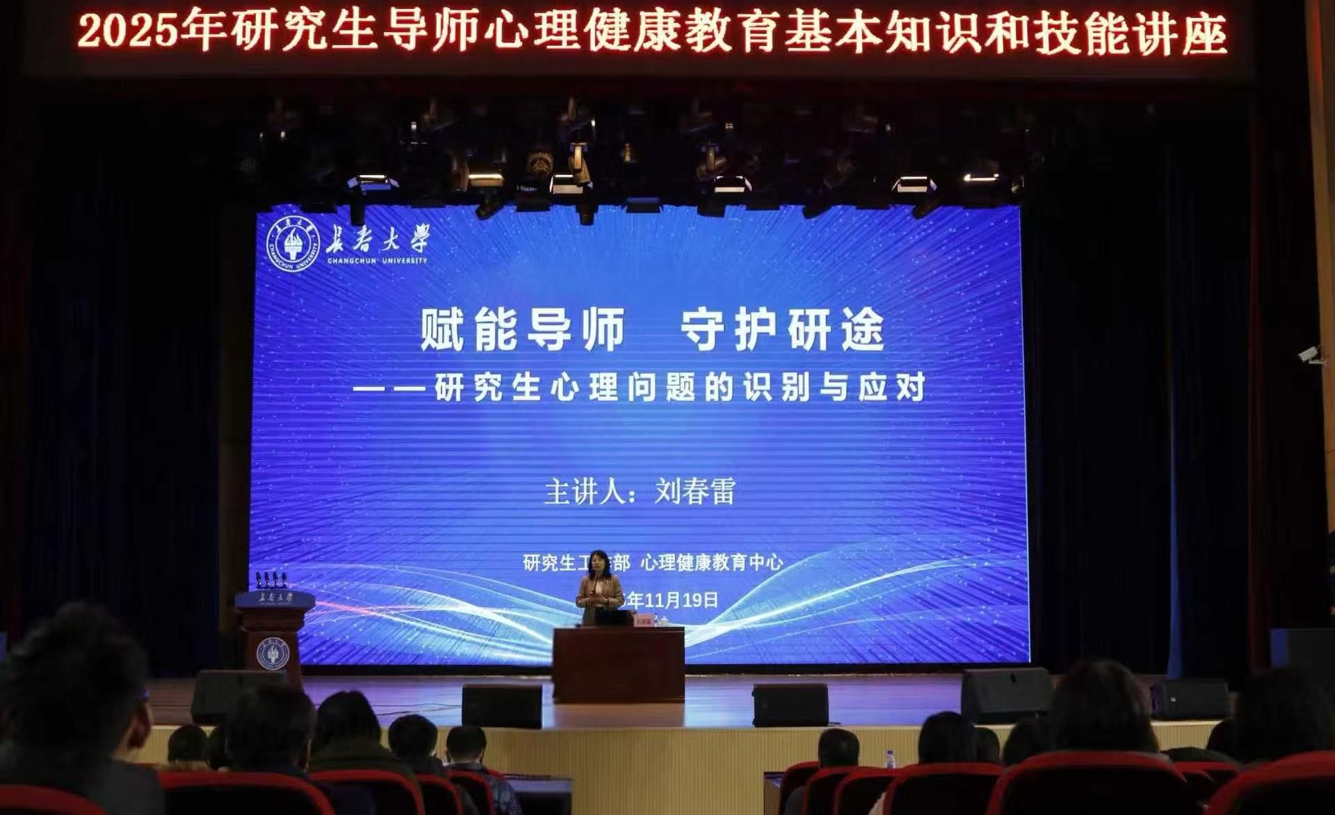 为了深入贯彻落实立德树人根本任务,加强研究生导师队伍建设,提升导师心理育人素养,促进研究生全面成长成才,11月19日下午,研究生工作部与心理健康教育中心联合举办2025年研究生导师心理健康教育基本知识和技能讲座,邀请省内心理健康教育专家刘春雷教授作了题为《赋能导师 守护研途——研究生心理问题的识别与应对》的专题报告。刘春雷教授围绕研究生心理健康工作的紧迫性、心理健康基础知识、导师的角色定位与职责、研究生心理问题的多维信号以及预防途径和积极干预等方面,....