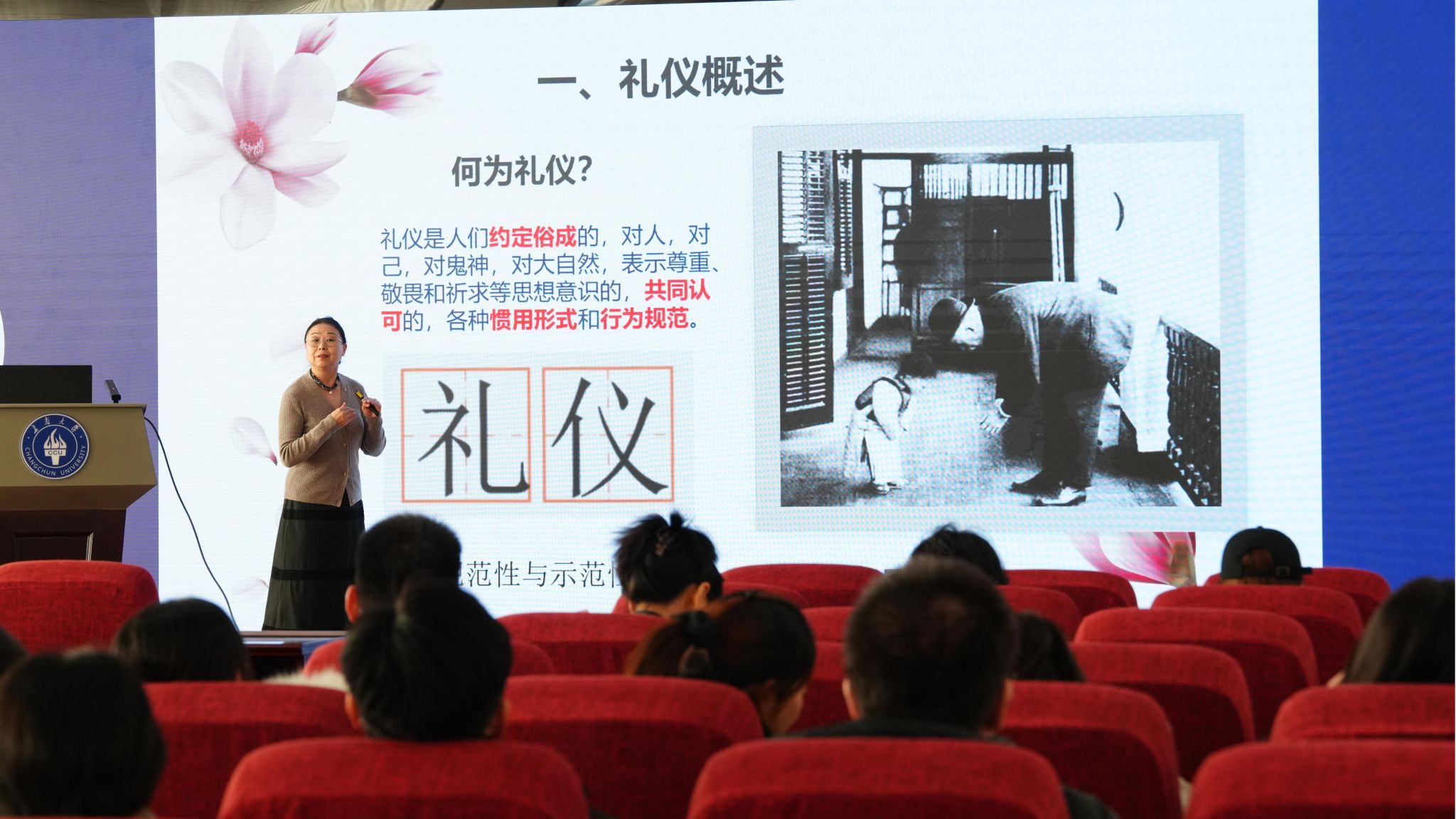 会上,长春职业技术大学美育教研室主任、礼仪形象培训师杜巍教授为新入职教师作了师德礼仪专题讲座。她从师德的内涵与价值、教师职业礼仪规范等方面入手,通过理论讲解、案例分析和现场演示等方式,深入阐述了师德修养和礼仪规范在教育教学工作中的重要性。