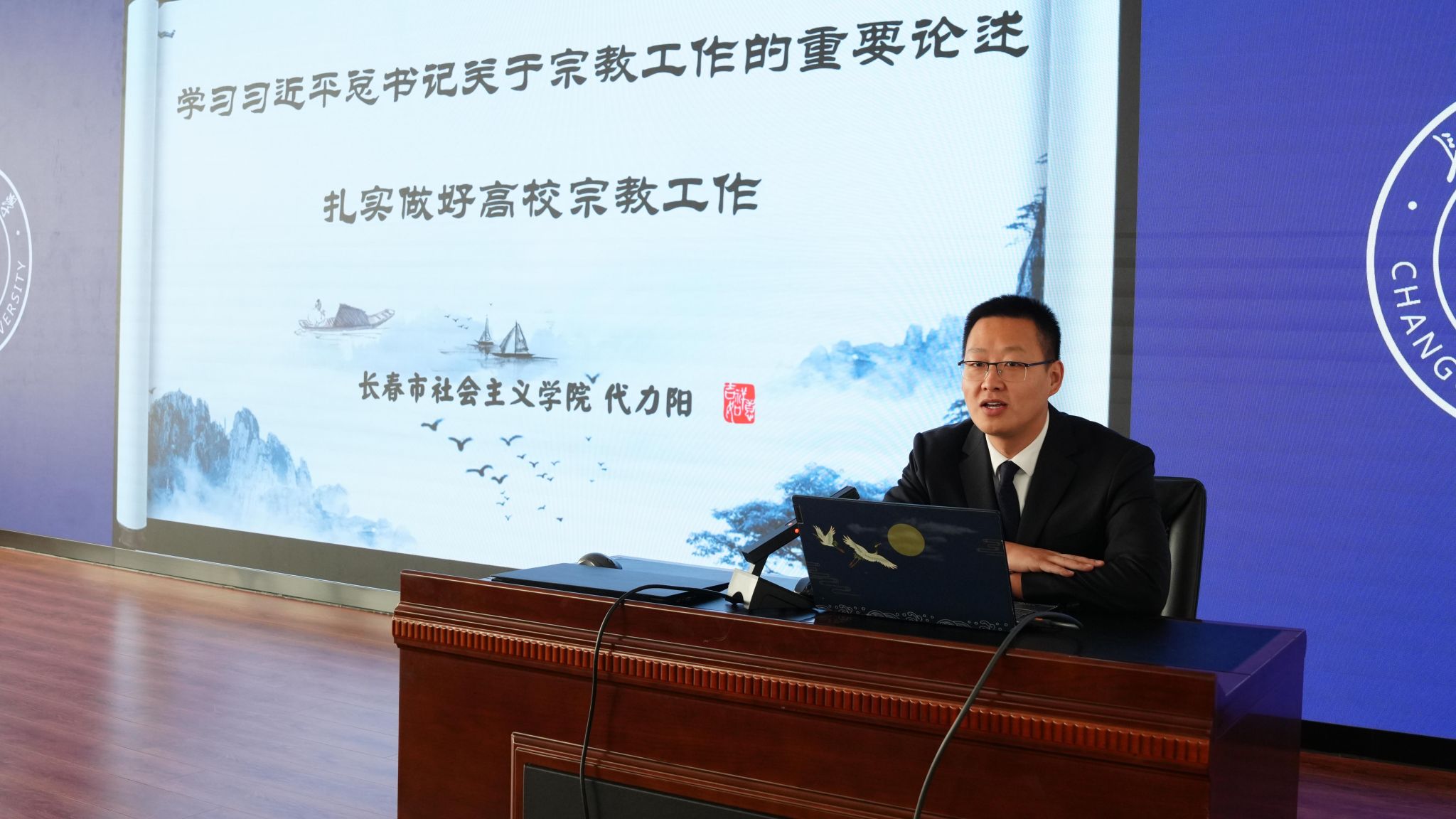 长春市社会主义学院研究室副主任、吉林省宗教工作智库成员代力阳作了题为《学习习近平总书记关于宗教工作的重要论述,扎实做好高校宗教工作》的专题讲座。他深入解读了习近平总书记关于宗教工作的重要论述,分析了当前高校宗教工作面临的形势和任务,并结合实际案例,就如何加强高校宗教工作、抵御宗教渗透等方面提出了具体的工作思路和方法。