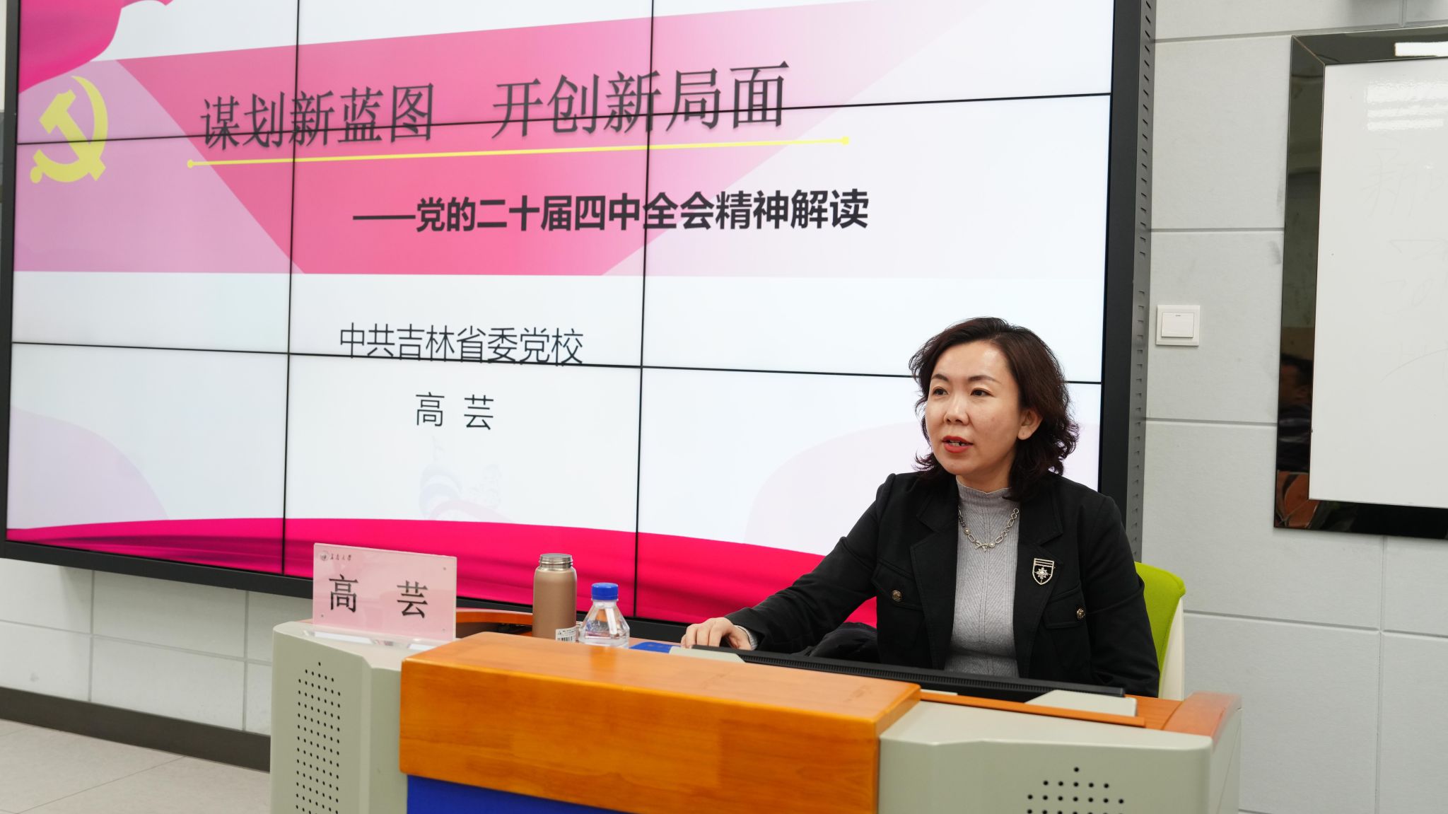 会议邀请省委党校经济学教研部主任高芸教授就党的二十届四中全会精神进行了权威解读,报告紧扣全会主题,立足国内外发展大势,结合“十五五”规划编制的时代背景与核心要求,运用详实的数据和生动的案例,对全会的重大意义、核心要义、精神实质以及未来发展的战略目标、重点任务、政策导向进行了全面系统、深入浅出的解读,为与会人员深刻理解、准确把握党的二十届四中全会精神提供了权威辅导和有力指引。