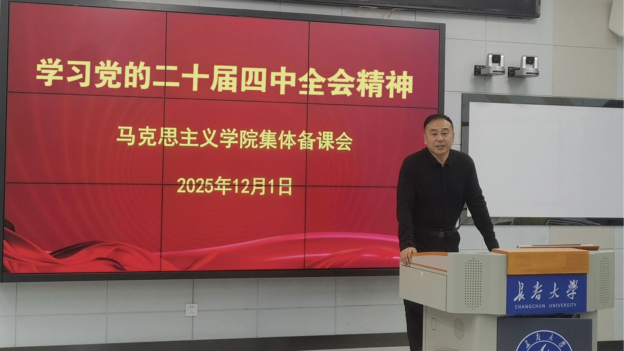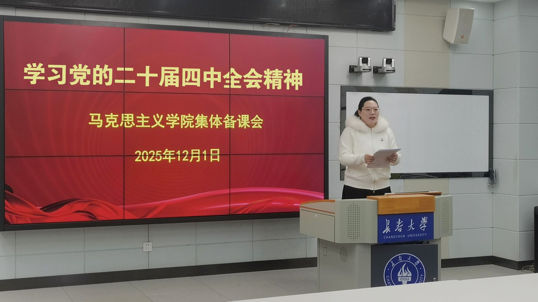 为推动党的二十届四中全会精神“进教案、进课堂、进学生头脑”落地见效,12月1日,马克思主义学院举办学习党的二十届四中全会精神集体备课会。学院全体教师参加备课会。思想道德与法治教研室主任李美希讲解了将党的二十届四中全会精神系统深入、有效地融入《思想道德与法治》课程的途径方法。形势与政策教研室主任程睿从时间点、发力点、关键点出发,将《形势与政策》课程的特色总结为讲出“吉林情、长大味”。中国近现代史纲要教研室主任锡宇飞将党的二十届四中全会精神更好地融入《....