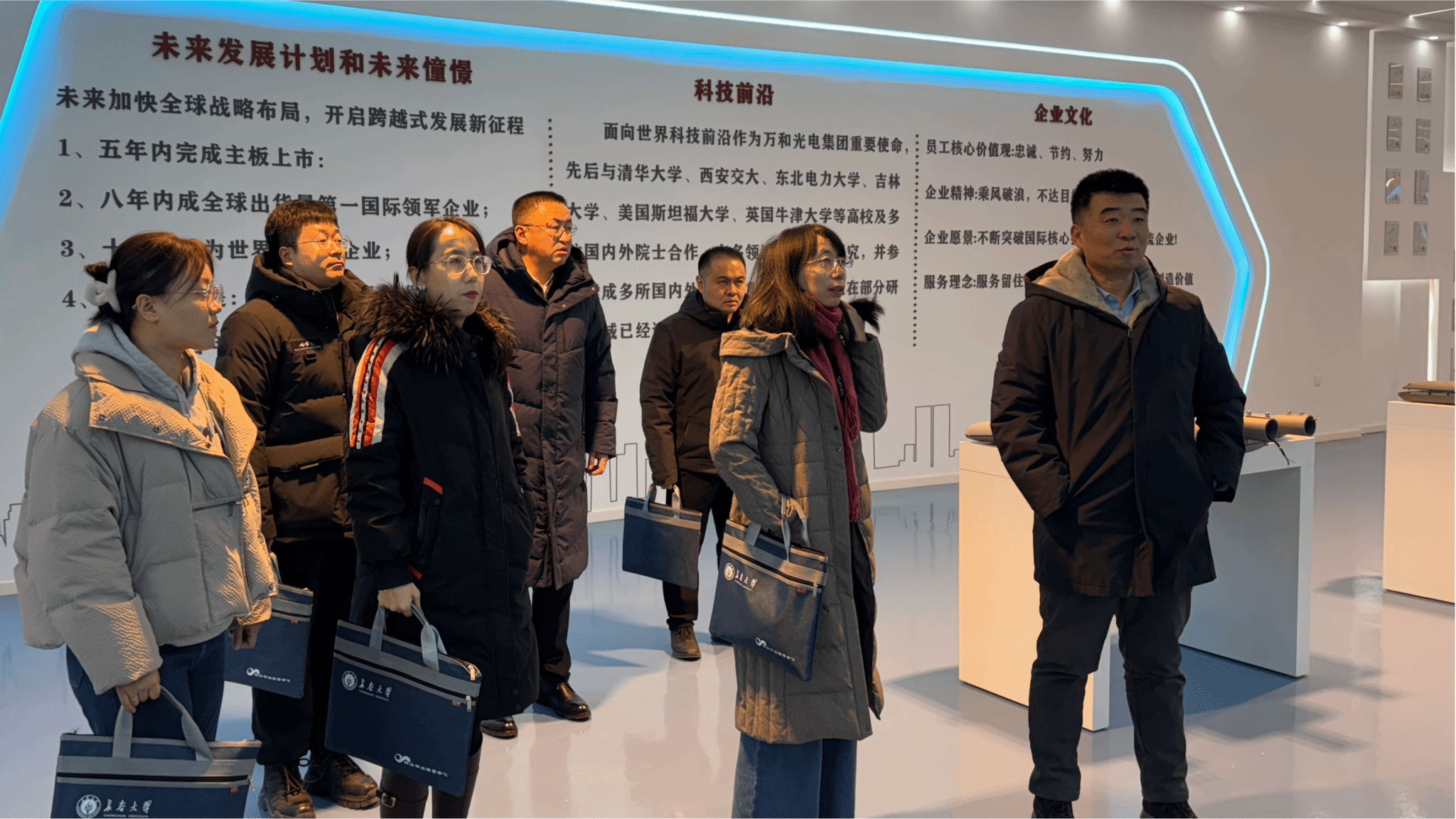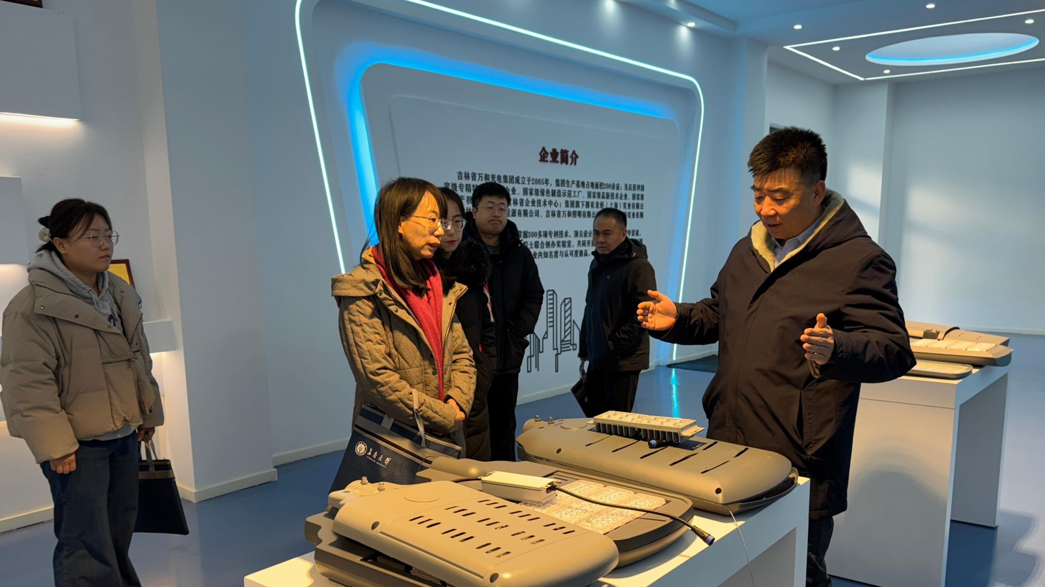 为深化产教融合、促进校企协同发展,12月12日,材料科学与工程学院院长胡小颖率领学院5位青年博士教师赴吉林省万和光电集团开展产学研合作交流活动。万和光电集团副总经理李树伟,学校就业创业指导中心主任李贵海参加活动。