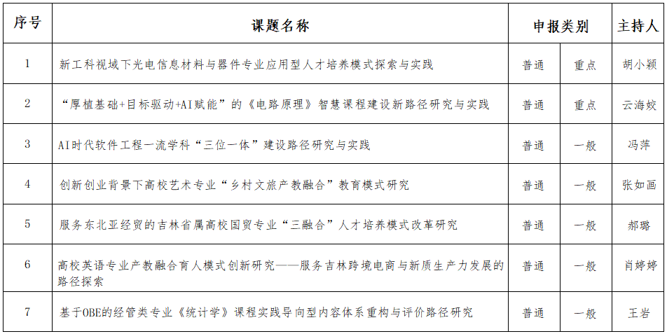 我校7项课题获批2026年吉林省高等教育教学改革研究课题立项