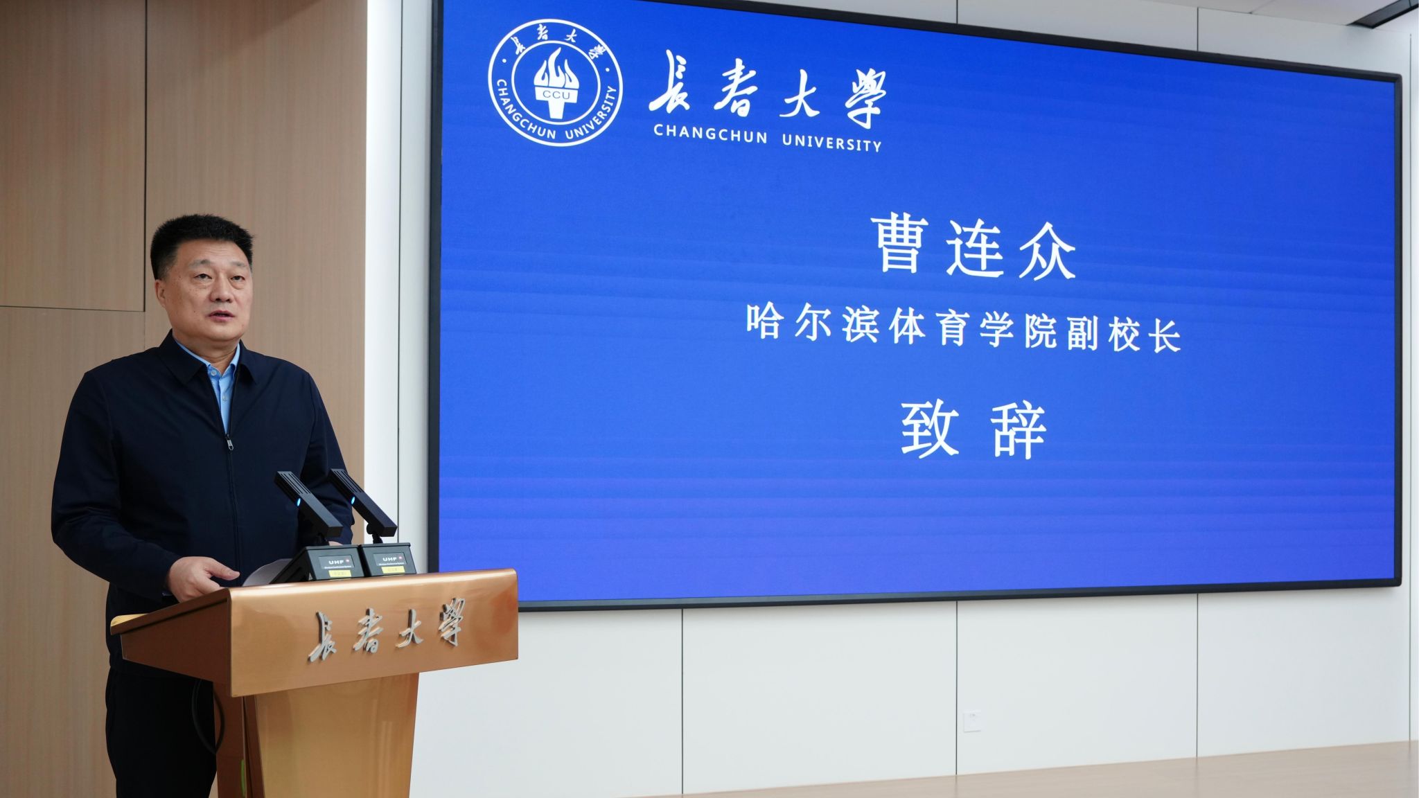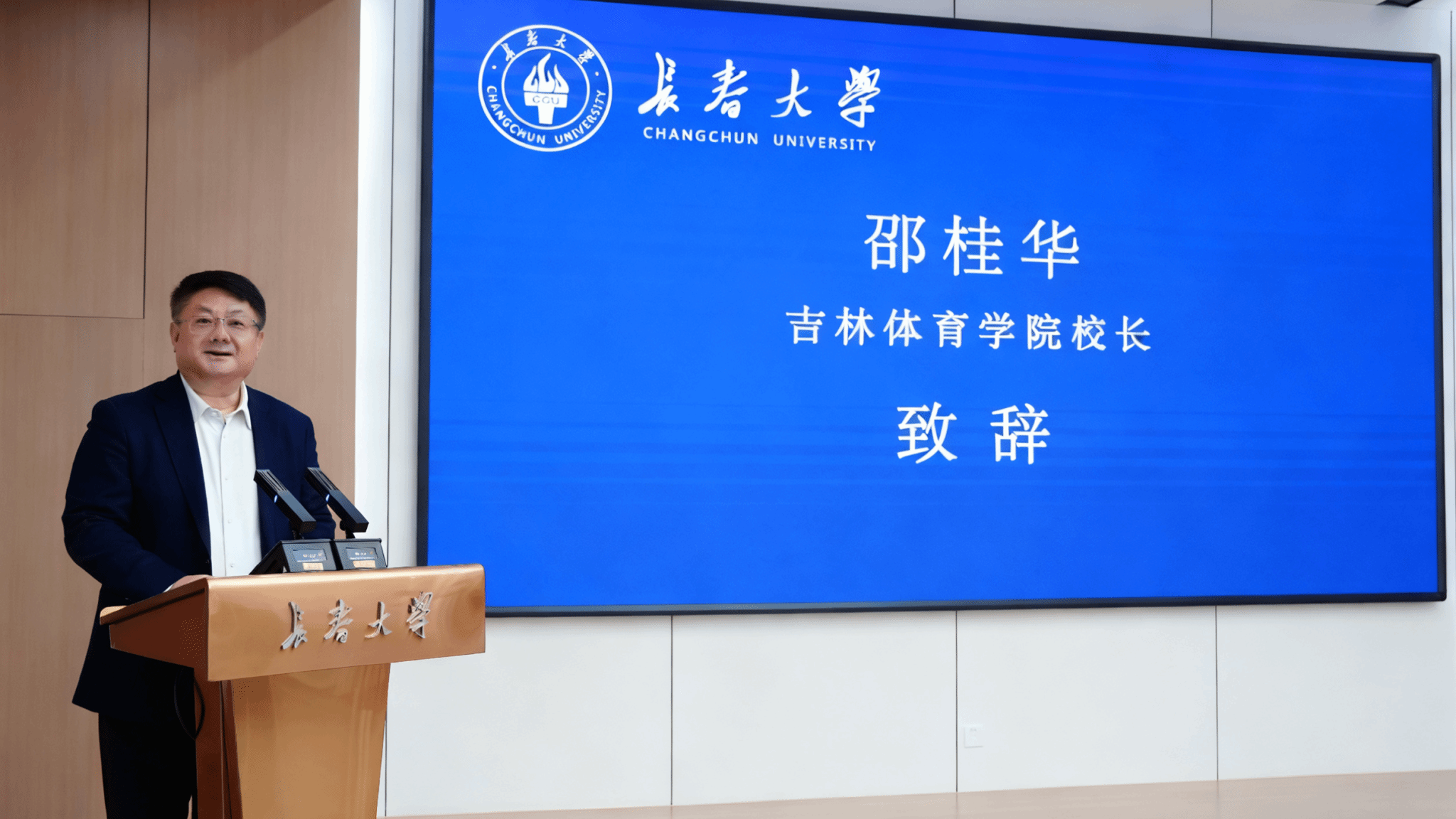韩业在致辞中表示,长春大学体育学院的成立是学校优化学科布局、推动多学科交叉融合的重要举措,标志着学校体育教育实现了从教学导向到学科研究导向的转型跨越。作为综合性大学,长春大学成功补齐了体育学科短板,不仅完善了学科体系,更将主动担当起体育强国、健康中国建设的时代责任,培养高素质体育专业人才。