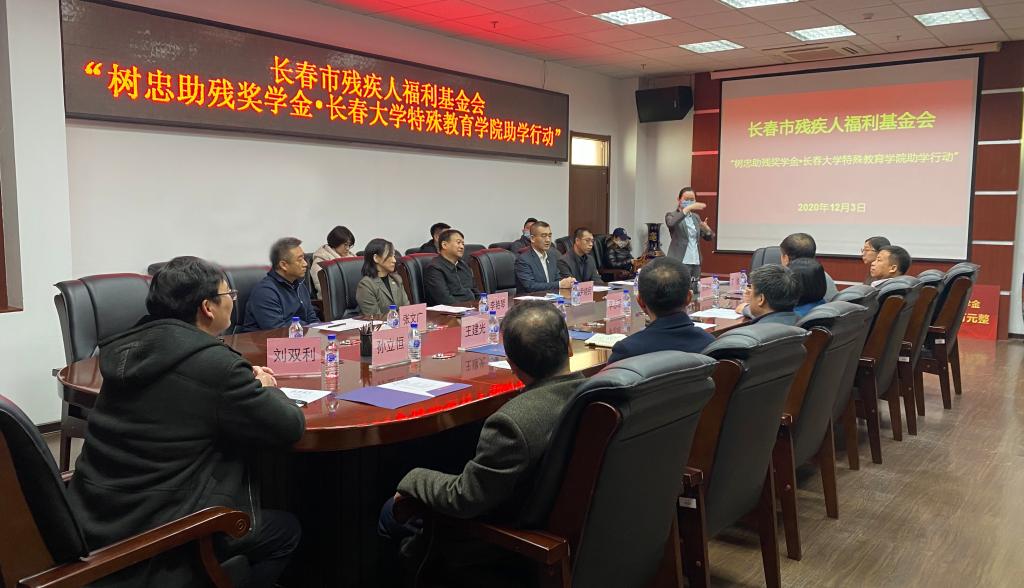 12月3日,在第29个国际残疾人日来临之际,长春市残疾人联合会、长春市残疾人福利基金会、长春大学特殊教育学院共同举办了“树忠助残奖学金·特殊教育学院助学行动计划”启动仪式。长春市残疾人联合会党组书记、理事长尹晓民,副理事长李艳琴,长春市残疾人福利基金会理事长于树忠,基金会秘书长兰德新,长春大学校长李志瑶,副校长、长春大学教育基金会理事长陈煜平,副校长张代治出席了活动。仪式由特殊教育学院党委书记王建光主持。