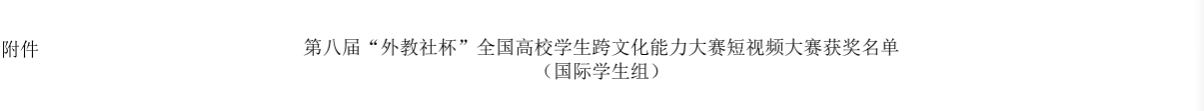 我校留学生荣获第八届“外教社杯”全国高校学生跨文化能力大赛短视频大赛一等奖
