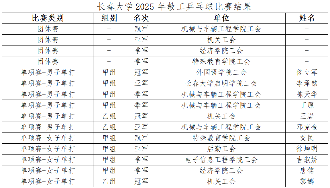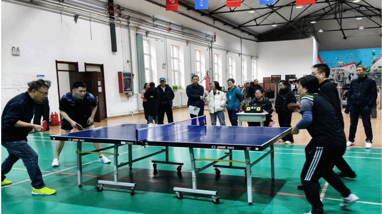 12月19日,由校工会主办,体育学院与教工乒乓球协会共同承办的2025年教工乒乓球比赛在学校训练馆举办。比赛吸引了11个基层工会的近40名教职工参加。