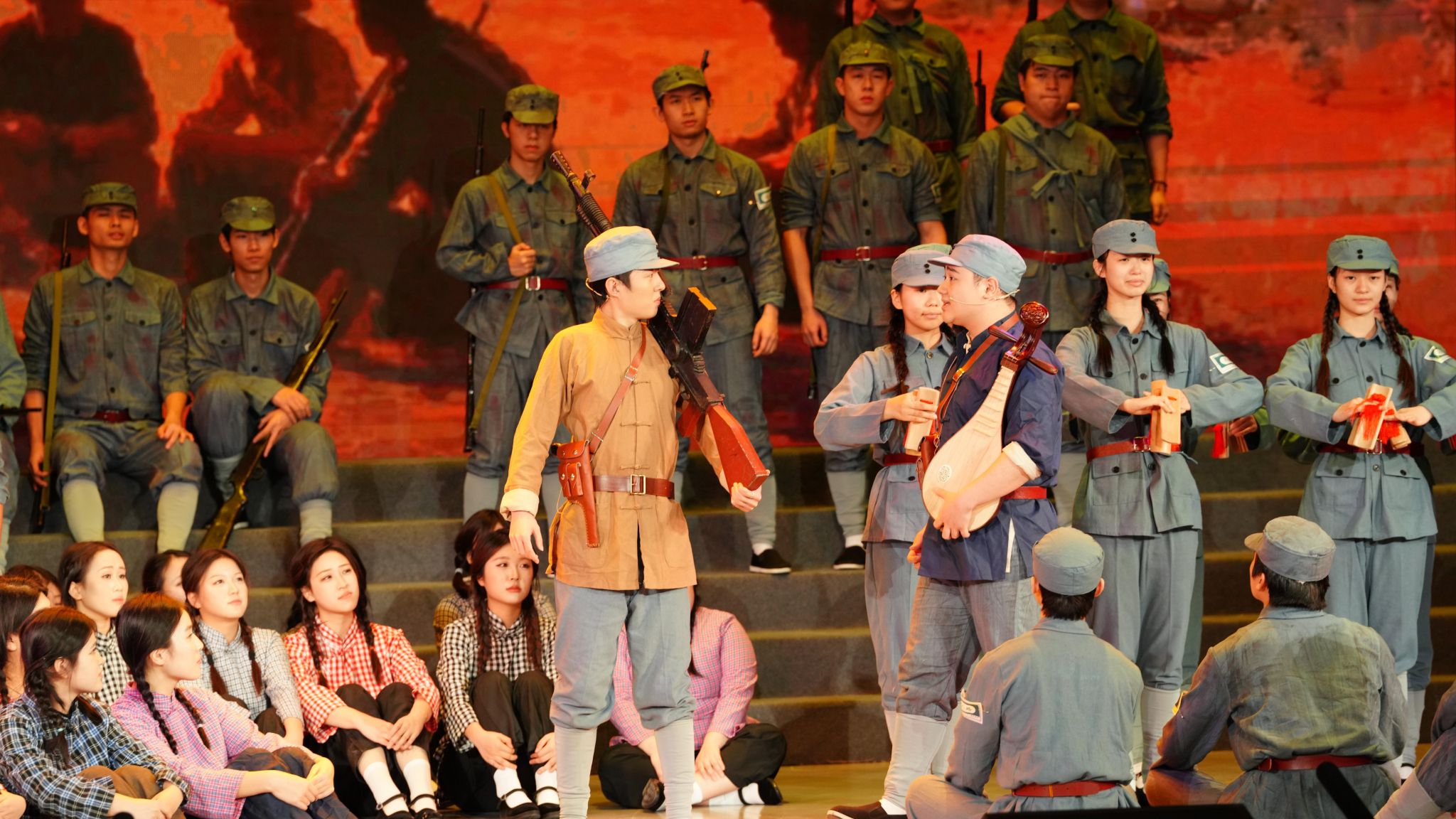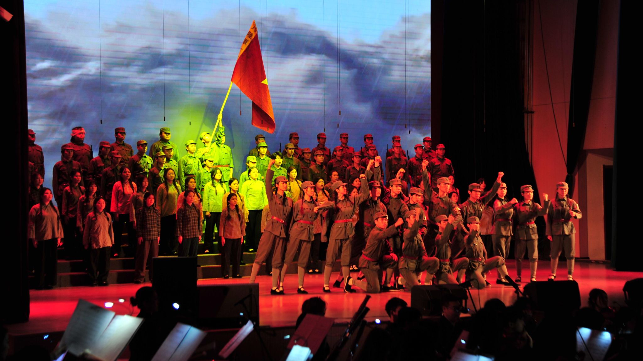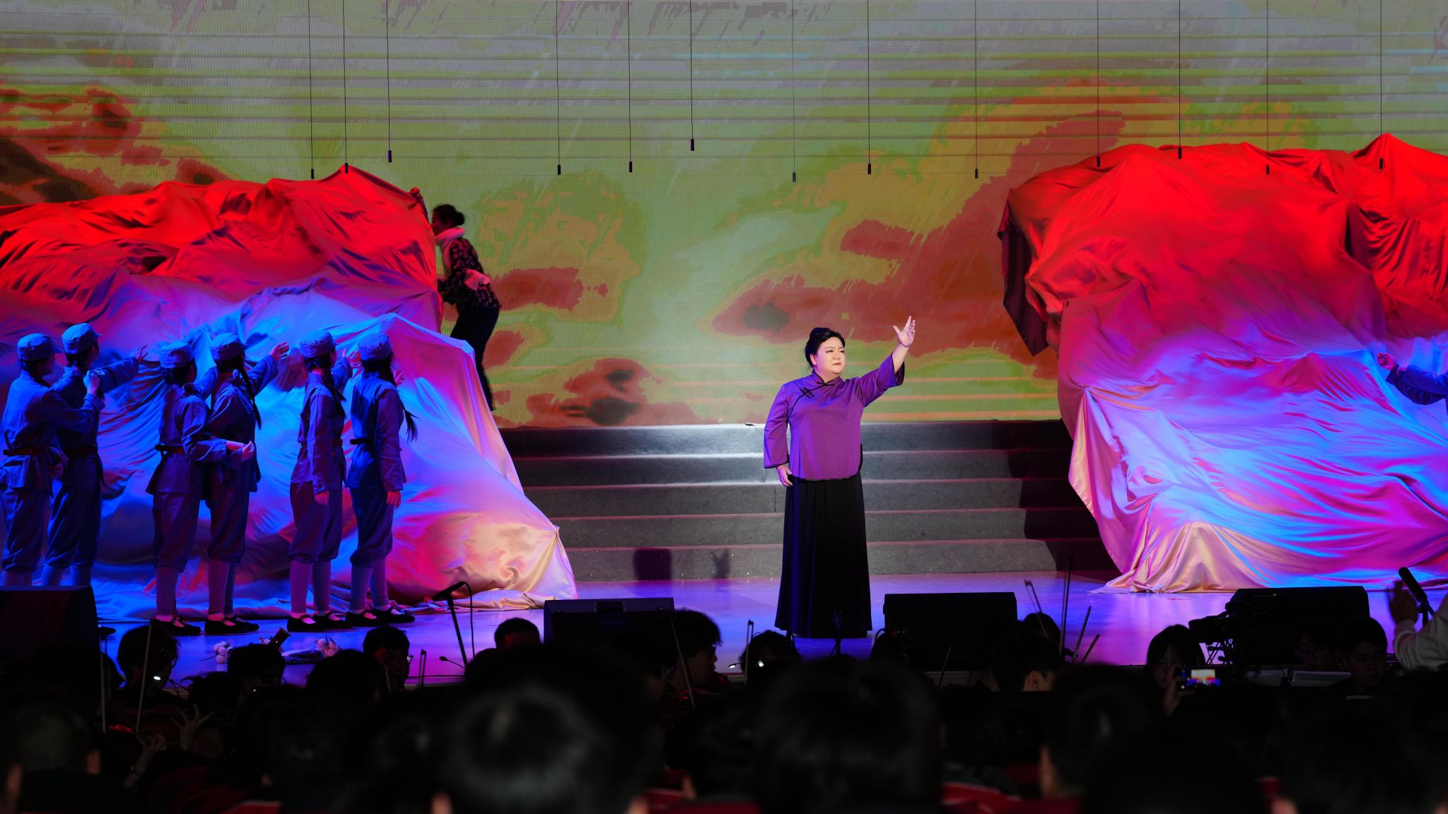 本次新年音乐会以“历史的回响,时代的旋律”为主题,创新融合交响合唱、戏剧、舞蹈与多媒体艺术形式,通过“情景合唱剧”模式,将观众带入抗战时期的烽火岁月,感受中华民族不屈不挠的抗争精神,重温通向伟大胜利的壮阔征程。