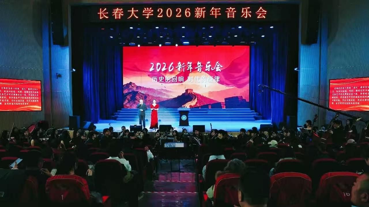 12月30日,由党委宣传部、音乐学院共同举办的“历史的回响,时代的旋律”2026新年音乐会在学校团风报告厅成功奏响。学校领导班子成员,各单位负责人,师生代表、校友代表及中央与省直媒体代表到场观看。音乐会通过长春大学官方视频号同步直播,累计吸引线上观众1.6万人次。音乐会上,长春大学党委书记所永吉代表学校党委向全校师生员工及家属、离退休老同志、海内外校友以及关心支持学校发展的社会各界致以诚挚的新年祝福,并回顾了2025年学校事业发展成就。....