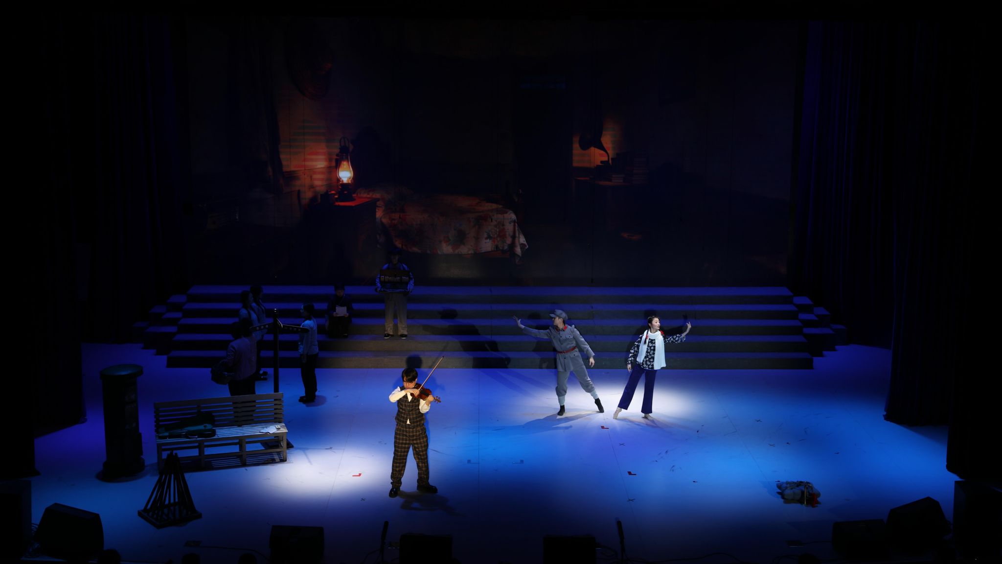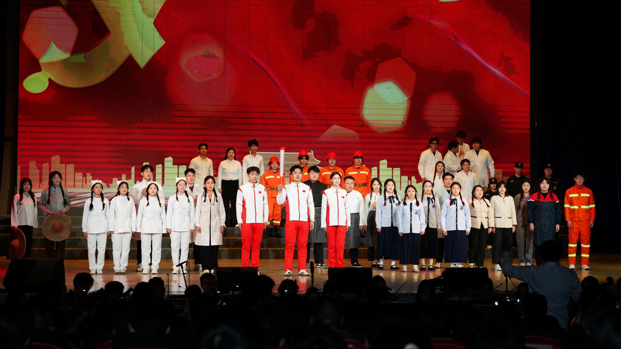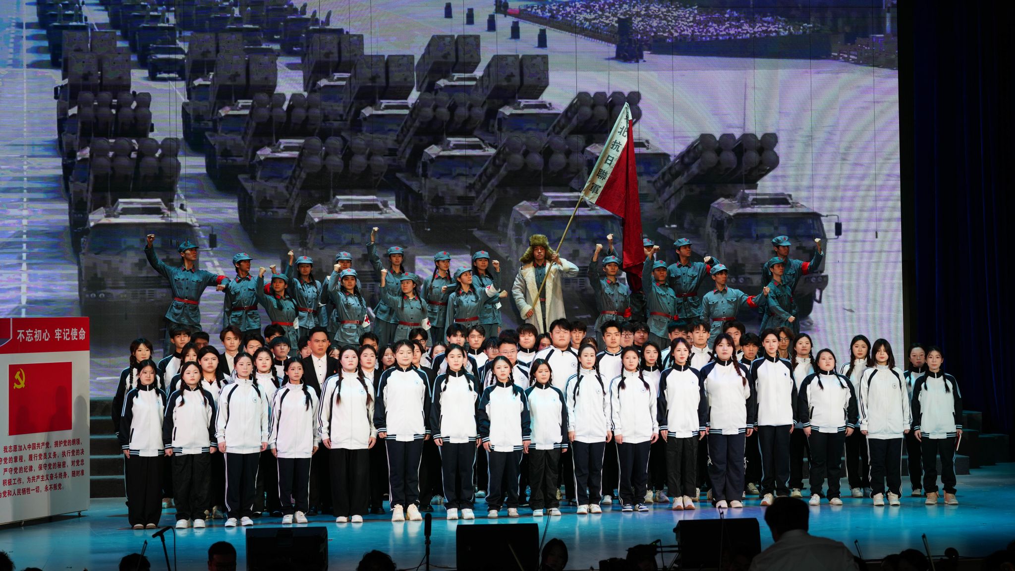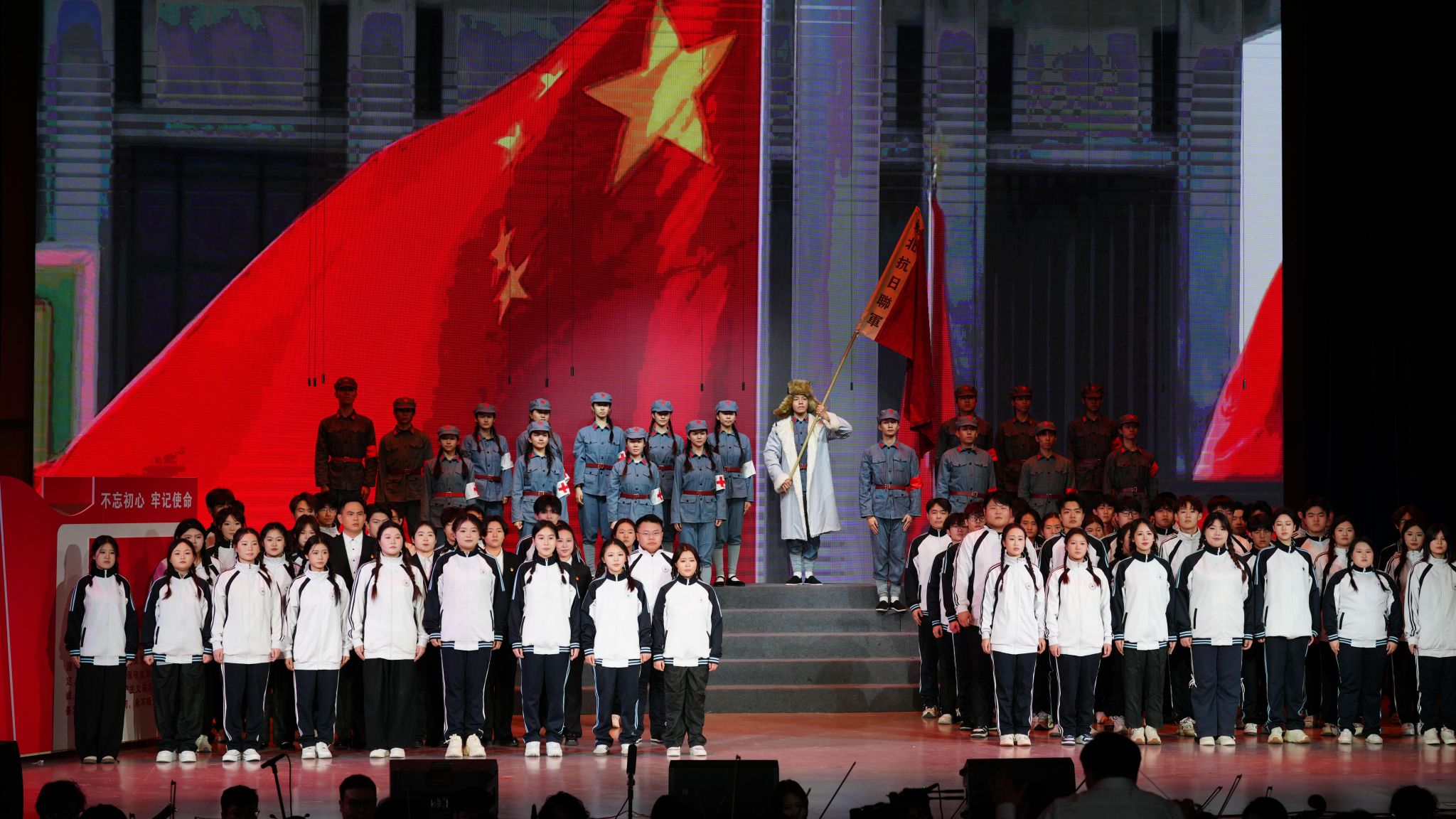 音乐会围绕五大篇章展开:《山河破碎·家国难安》以《松花江上》《毕业歌》等混声合唱再现国土沦陷之痛;《暗夜求索·星火燎原》通过独唱《红军战士想念毛泽东》及小提琴独奏《思乡曲》展现中国共产党在黑暗中的引路之光;《铁骨抗争·黄河怒吼》以交响合唱《黄河大合唱》奏响全民族抗战的磅礴气势;《决胜荣光·山河无恙》借《游击队之歌》等曲目刻画军民智慧与胜利喜悦;最终篇章《初心如磐·走向复兴》以《没有共产党就没有新中国》等歌曲,抒发人民对党的真挚情感与走向复兴的坚定信念。整场演出通过艺术与历史的深度融合,让观众在旋律中重温峥嵘岁月,凝聚起奋进新时代的精神力量。