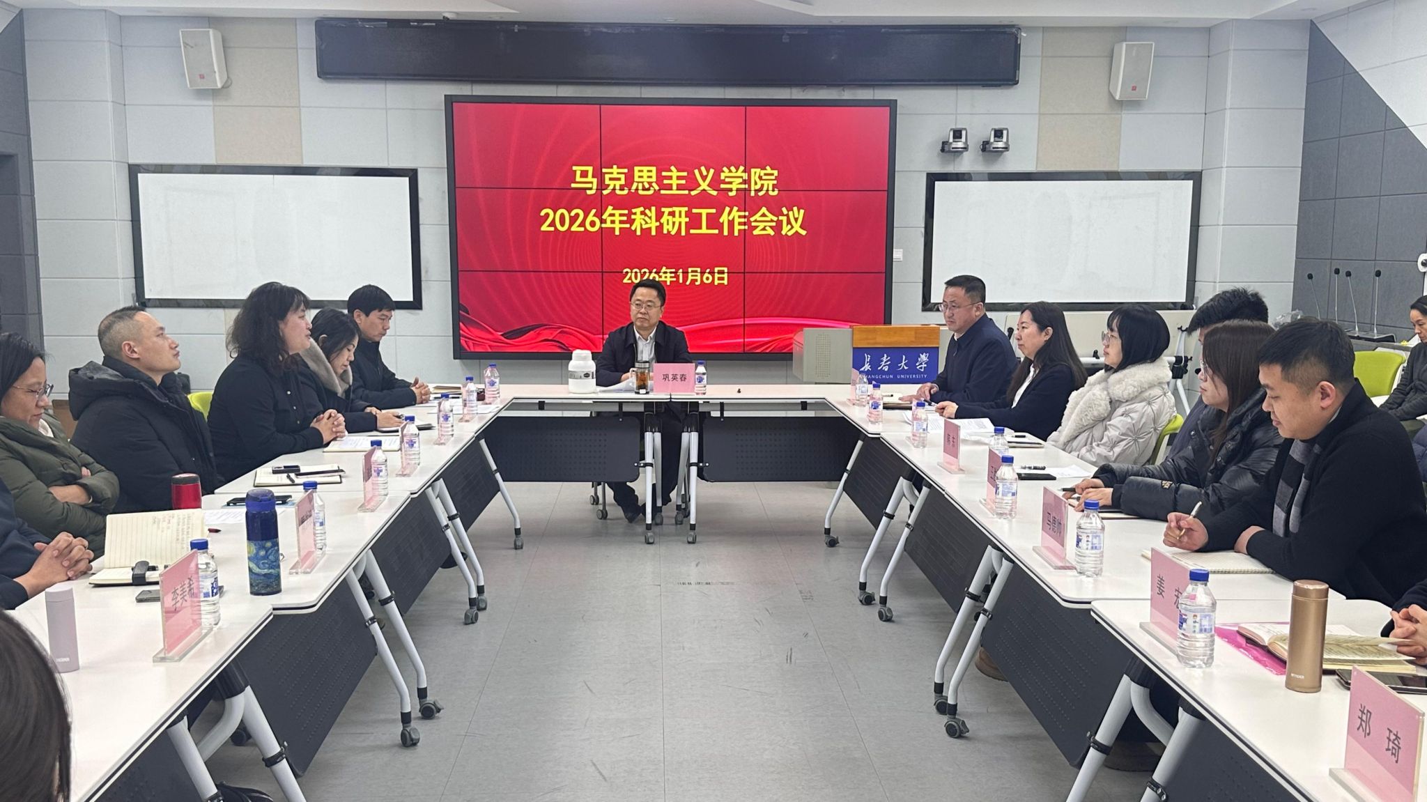 为系统总结2025年度科研成果,科学部署2026年科研任务,1月6日下午,马克思主义学院召开2026年科研工作会议。学校党委副书记巩英春出席会议。会上,马克思主义学院院长庞凌霄传达了学校科研工作会议内容,全面总结了2025年度学院科研工作在项目申报、成果产出、队伍建设等方面取得的显著成效,并围绕课题申报、论文发表、专著出版及社会服务等重点方向,明确了2026年度科研工作的目标任务与实施路径。15名博士教师代表依次汇报了2026年科研工作计划,....