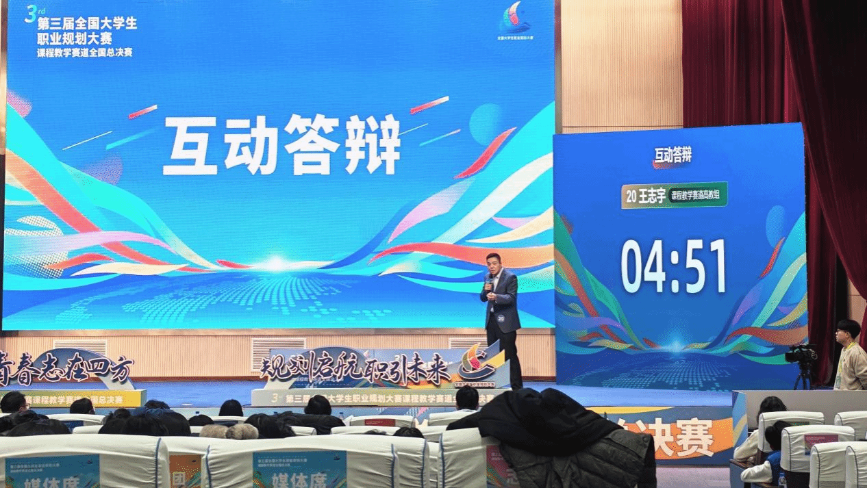 本次大赛以“筑梦青春志在四方,规划启航职引未来”为主题,是深化高校生涯教育改革、提升就业指导服务水平的重要平台。课程教学赛道着重考察课程体系的科学性、教学创新的实效性以及育人成果的显著性。王志宇老师团队历经省赛层层筛选,凭借优异表现以吉林省第一名的佳绩脱颖而出,成功晋级全国总决赛的现场赛。在与全国顶尖高校教师同场竞技时,团队凭借系统详实的课程建设报告、精彩生动的模拟授课环节以及深入透彻的互动答辩,全方位展示了我校《大学生职业生涯与就业指导》课程的建设深度、改革力度与育人温度。其先进的教学理念、扎实的教学内容和显著的教学成效,赢得了评委的高度认可。