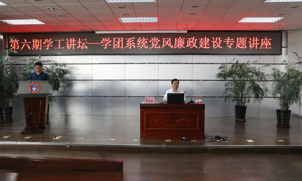 为进一步贯彻落实《普通高等学校辅导员队伍建设规定》,全面推进学工干部队伍的党风廉政建设,营造清正廉洁的学生工作氛围,建设一支政治强、业务精、纪律严、作风正的学工干部队伍,6月27日下午,学校在综合楼B区703会议室举办学工讲坛第六期——学团系统党风廉政建设专题讲座。讲座由学生工作部部长马东辉主持。
