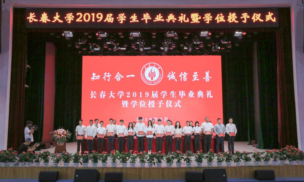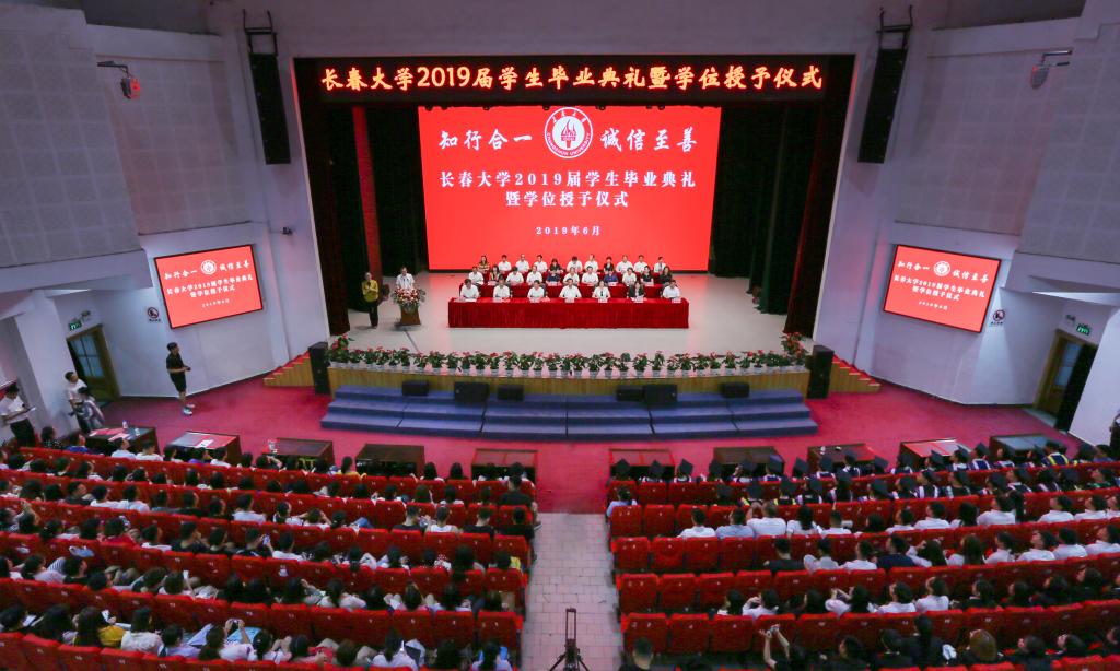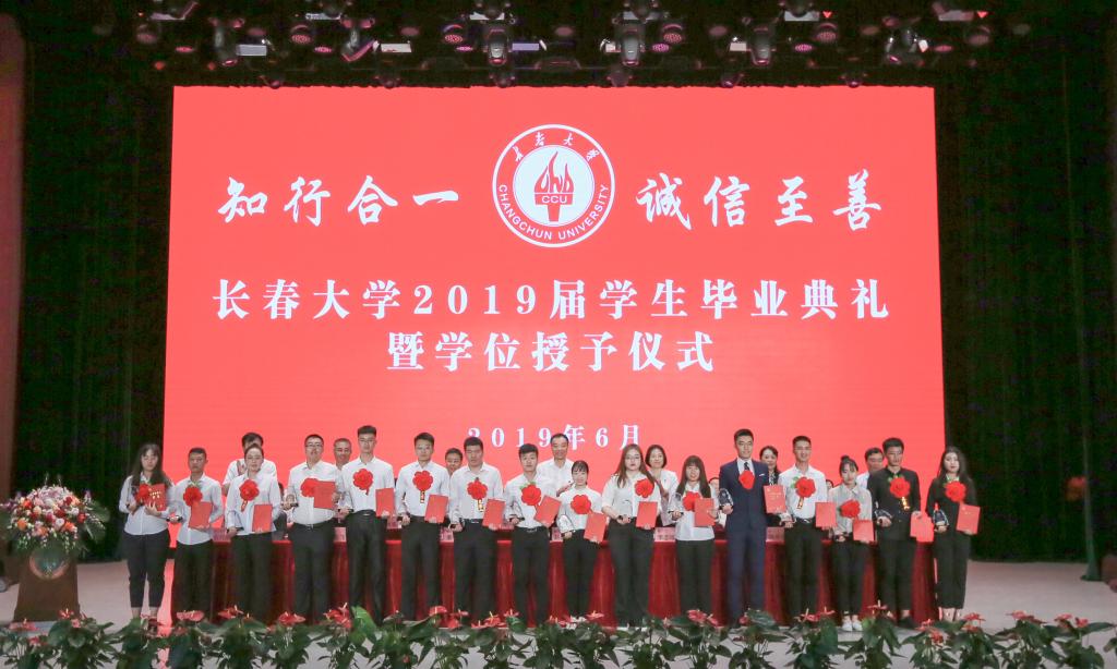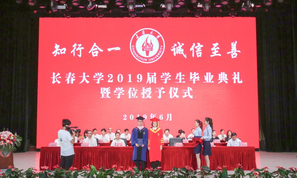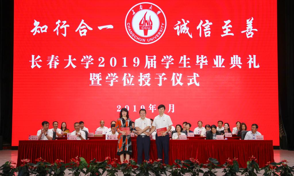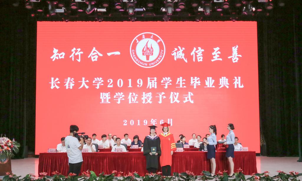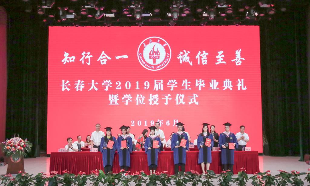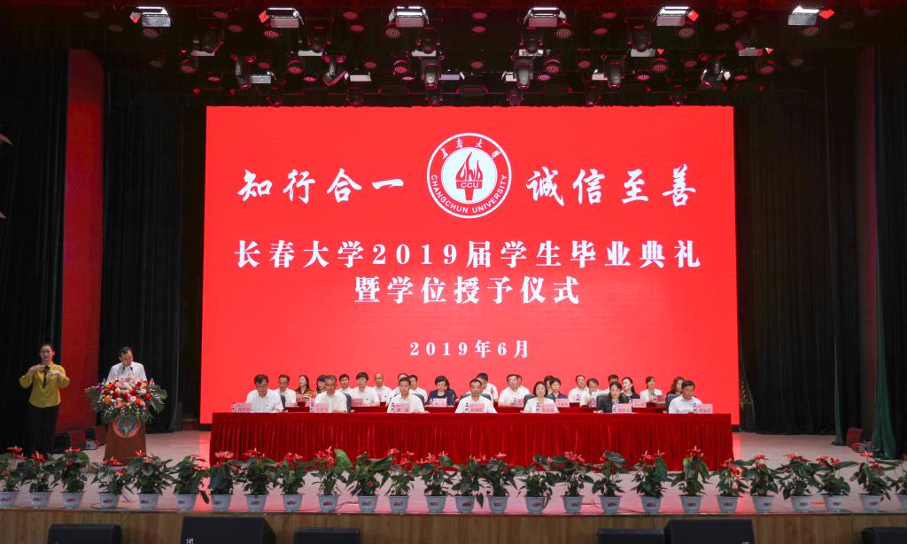 毕业典礼伴随着庄严的国歌拉开帷幕。副校长张代治宣读了《长春大学关于准予马威等49名硕士研究生毕业的决定》《长春大学关于授予马威等49名学生硕士学位的决定》《长春大学关于准予戴猛等3517名本科学生毕业的决定》《长春大学关于准予王冀豫等308名专科学生毕业的决定》《长春大学关于授予戴猛等3513名学生学士学位的决定》《长春大学关于准予维拉尼卡等3名本科留学生毕业的决定》《长春大学关于授予维拉尼卡等3名本科留学生学士学位的决定》;党委副书记童猛宣读了《长春大学关于表彰2019年度优秀硕士学位论文获得者及指导教师的决定》《长春大学关于表彰2019届优秀毕业硕士研究生的决定》《长春大学关于表彰2019届优秀升学硕士研究生的决定》《长春大学关于表彰2019届优秀本、专科毕业生的决定》。