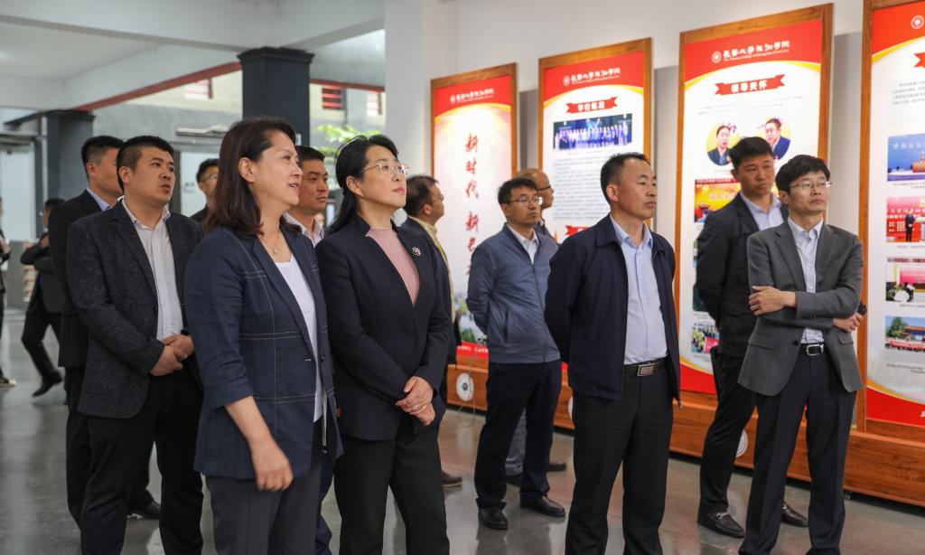 在长春建筑学院,魏秀云一行人在学院领导的陪同下参观了图书馆党团活动室、电气信息学院党建走廊及党团活动室、行政服务中心大厅及社团活动场所、“新时代传习所”及公共艺术学院“创意街区”、交通学院学生公寓等党建园地,观看了《让信仰筑起理想风帆》《长春建筑学院国旗护卫队》宣传片。在随后的交流座谈中,长春建筑学院党委书记、督导专员李贵海介绍了学院党建工作的亮点特色;我校党委常委、组织部部长袁洪亮,机械与车辆工程学院党委书记汪洋和理学院党委书记于永俊分别对学校党建工作基本情况、学院师生联合党支部建设情况和教师党支部书记“双带头人”培育工作进行了交流。
