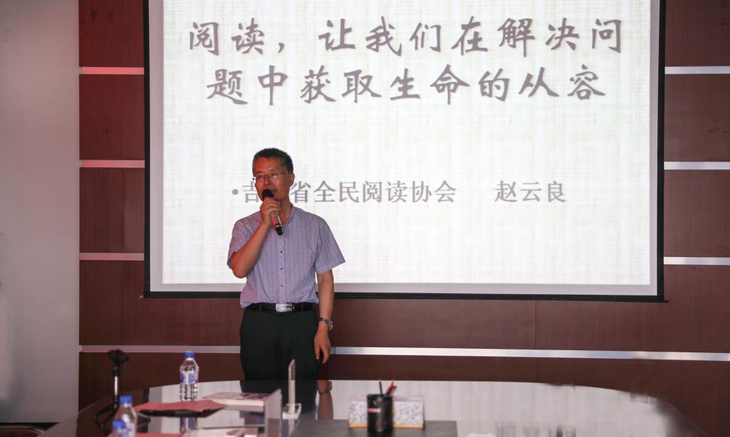 仪式后,吉林省全民阅读协会会长赵云良以《阅读,让我们在解决问题中获取生命的从容》为题为与会师生作讲座,从解决问题的角度切入,分享阅读的心得体会。