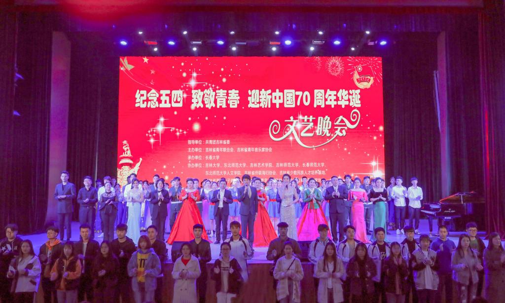 4月26日晚,由共青团吉林省委员会指导,吉林省青年联合会、吉林省青年音乐家协会主办,长春大学承办的“纪念五四 致敬青春”迎新中国70周年华诞文艺晚会暨长春大学建校70周年校庆系列文化活动在学校图书馆报告厅举行。吉林省委宣传部副部长、省文联主席陈耀辉,共青团吉林省委副巡视员李忠双,共青团吉林省委副书记郑伟峰,共青团吉林省委副书记、吉林省青年联合会副主席高地,共青团吉林省委副书记、吉林省青年联合会副主席金涛,吉林省青年联合会副主席、国家开发银行吉林分行副行长张兆义,学校党委书记赵骥民,校长李志瑶,党委副书记童猛,纪委书记李廷吉和近千余名师生观看了演出。