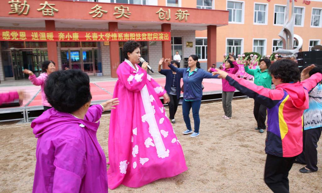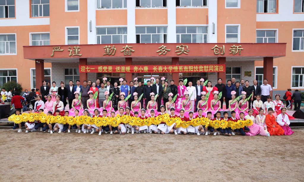 在中国共产党成立97周年前夕暨和龙市脱贫攻坚百日会战关键时期,6月20日,学校党委书记赵骥民、党委副书记魏秀云、纪委书记李廷吉、副校长陈煜平以及师生代表70余人带着校党政工团各级组织的祝福和问候,来到福洞镇开展脱贫攻坚文艺演出,用文化艺术形式慰问全镇各族群众,歌颂党的脱贫攻坚政策,共同弘扬党的优良传统,共筑脱贫致富奔小康的美好梦想。