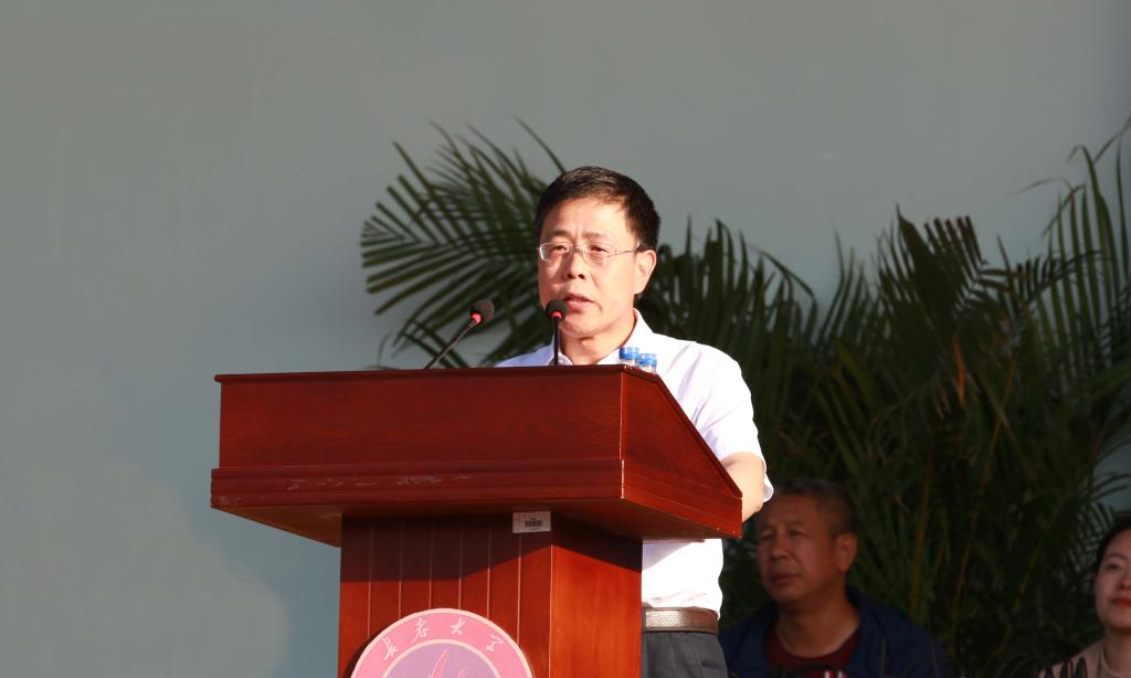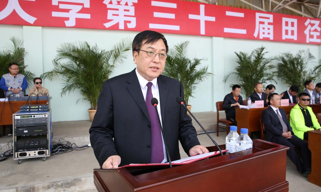 庄严的升国旗仪式后,副校长张代治致开幕词,他指出,一年来,学校大事不断,喜事连连。在各项事业取得长足进步的同时,群众性体育活动蓬勃发展,“健康长大”系列活动如火如荼,各项文体赛事异彩纷呈;竞技类体育成绩骄人,影响力持续增强。希望全校师生在新时代的征程上永葆蓬勃的朝气、昂扬的锐气和浩然的正气,用健康的体魄和奋进的激情担当起时代的重托,以良好的精神风貌,投身于学校高水平应用型大学建设的伟大事业中。
