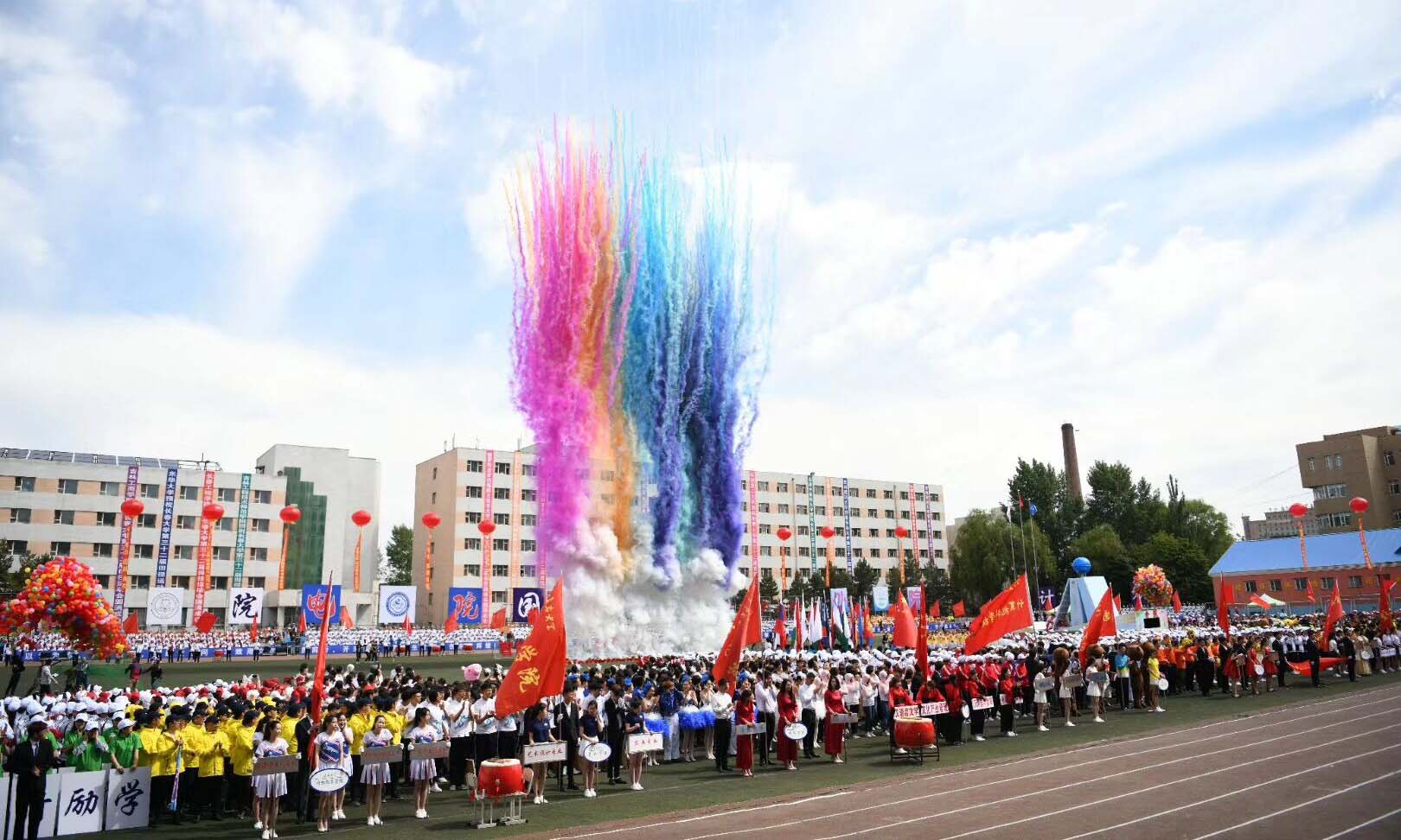5月25日,学校第三十二届田径运动会在体育场隆重举行。吉林省学生体育协会、吉林省教育厅体育卫生艺术教育处、长春市委宣传部高教处相关负责同志,学校领导以及相关院部负责人出席了开幕式。