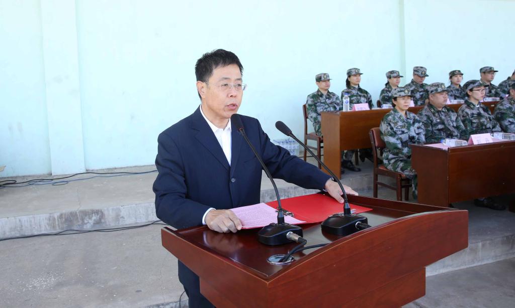 童猛在讲话中对此次军训工作提出了三点要求:一要提高认识,以军人的严明纪律培养学生的良好行为,以军人的严整风纪培养学生的文明习惯,以军人的坚强意志培养学生的坚毅品格,以军人的团结精神培养学生的团队意识,切实增强学生参与军训的自觉性和主动性;二要严格落实责任、严格训练标准、严格军训纪律、严格考核奖惩,确保军训工作的安全、质量和效果;三要精心组织,加强参训学生思想教育,做好训练期间参训学生防暑和医疗后勤等保障工作。同时,童猛强调,军训锻炼磨练的是意志和勇气,增强的是战胜困难的信心和决心,留给学生的将是刻骨铭心的回忆和终生受用的财富,并希望同学们以饱满的热情、旺盛的斗志、标准的军姿和恢宏的气势来展示长大人昂扬向上、奋发有为的精神风貌,完成学校2017级学生军训的各项任务。