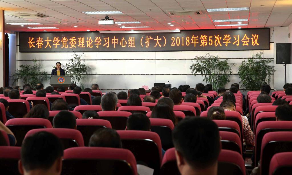 校院两级党委理论学习中心组成员、机关各部门副处级以上干部、全体学团干部参加了会议。