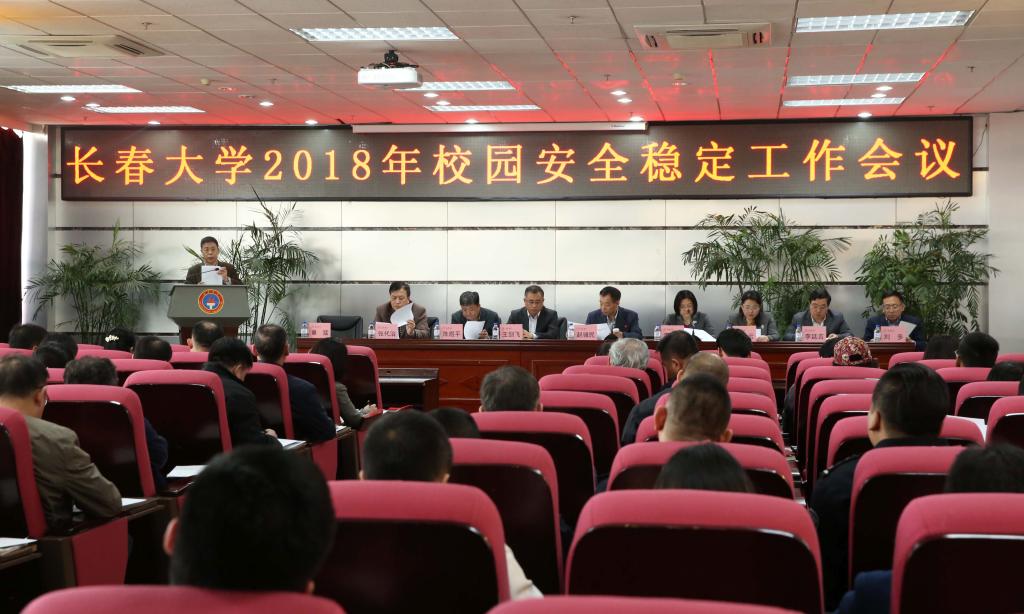 4月24日下午,学校在综合楼B区703会议室召开长春大学2018年度校园安全稳定工作会议。学校领导班子成员出席会议。会议由党委副书记童猛主持。