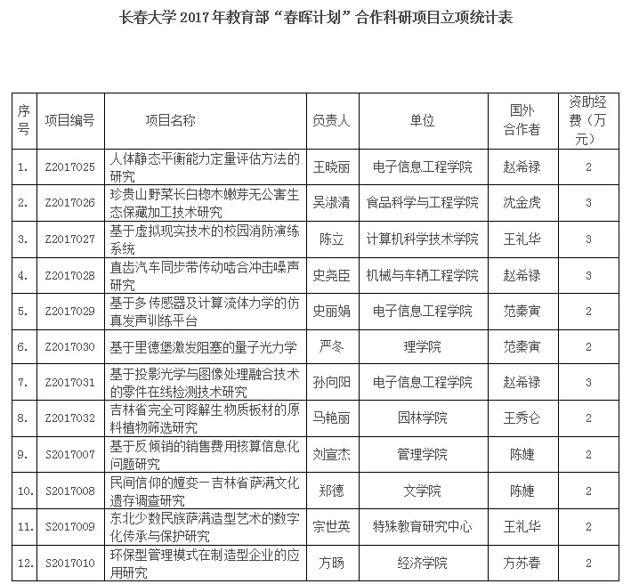 日前,教育部国际合作与交流司公布了2017年教育部“春晖计划”合作科研项目评审结果,我校获批理工类项目8项、文科类项目4项,共计批准立项12项,总资助经费28万元。此批项目的成功立项是我校在教育部“春晖计划”合作科研项目中立项数目最多、获资助经费总额最多的一次。“春晖计划”项目对我校教师国际交流与合作、科研水平提高具有积极的推动作用。