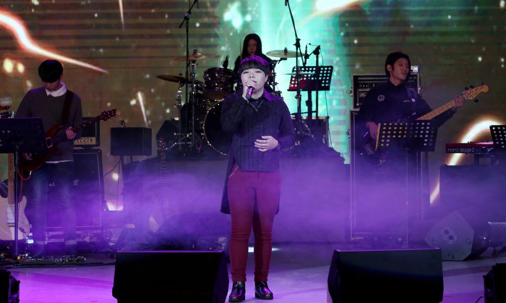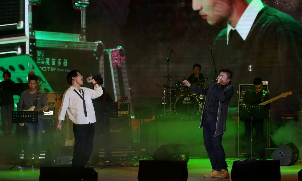 12月14日晚,我校音乐学院流行音乐系与南台科技大学流行音乐产业系学生乐团在学校图书馆报告厅举行海峡两岸高校流行音乐联合专场演出。