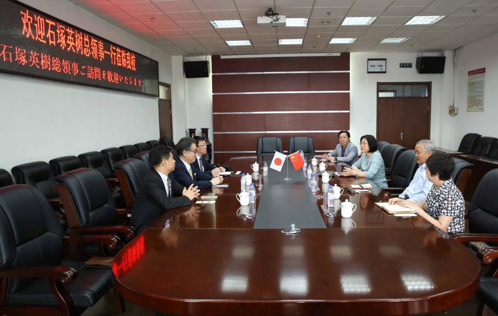 近日,日本国驻沈阳总领事石塚英树一行两人在长春市外事办亚洲处处长欧硕的陪同下来我校访问,校长李志瑶亲切会见了总领事一行。
