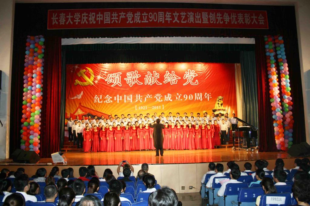 日前,由学校党委宣传部、党委组织部、学校办公室主办,党委学工部、团委、音乐学院、图书馆、后勤总公司、各党总支、直属党支部协办的长春大学庆祝中国共产党成立90周年文艺演出暨创先争优表彰大会在学校大礼堂隆重举行。学校领导、部分教工党员和学生党员共同参加了大会。
