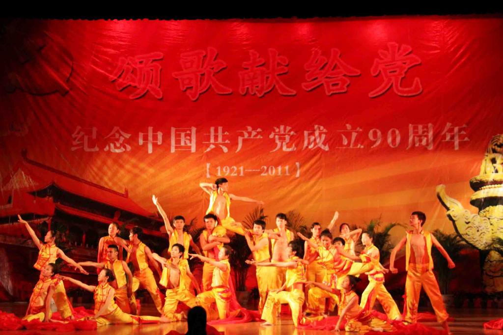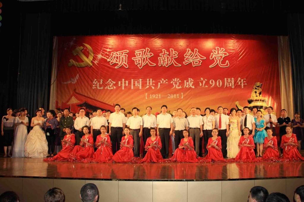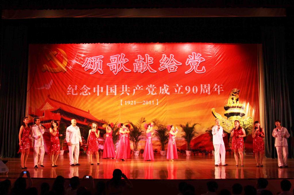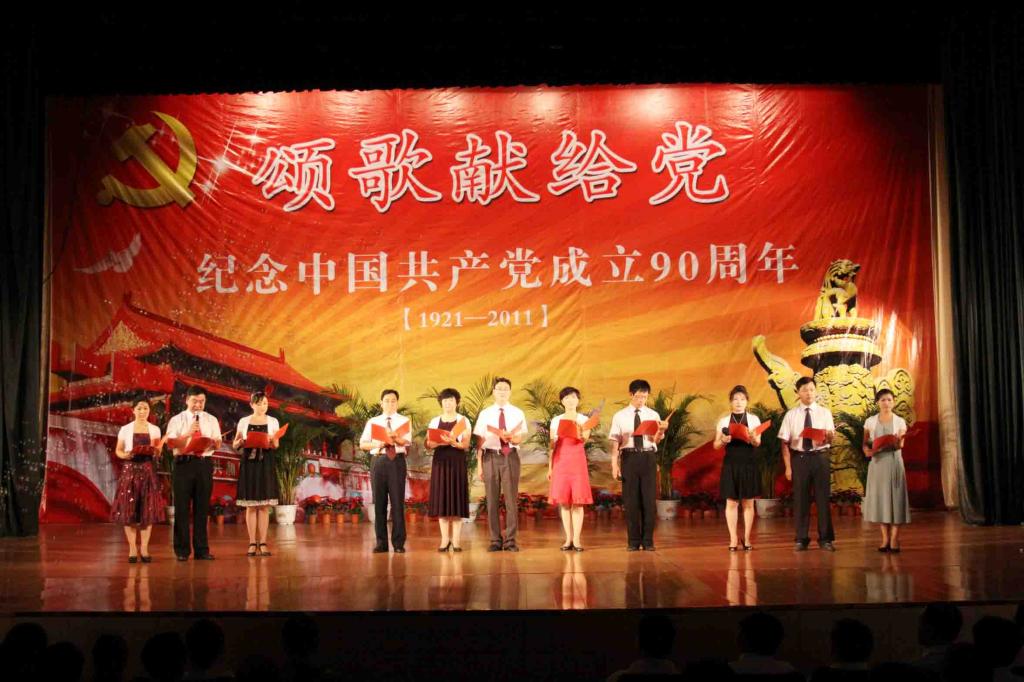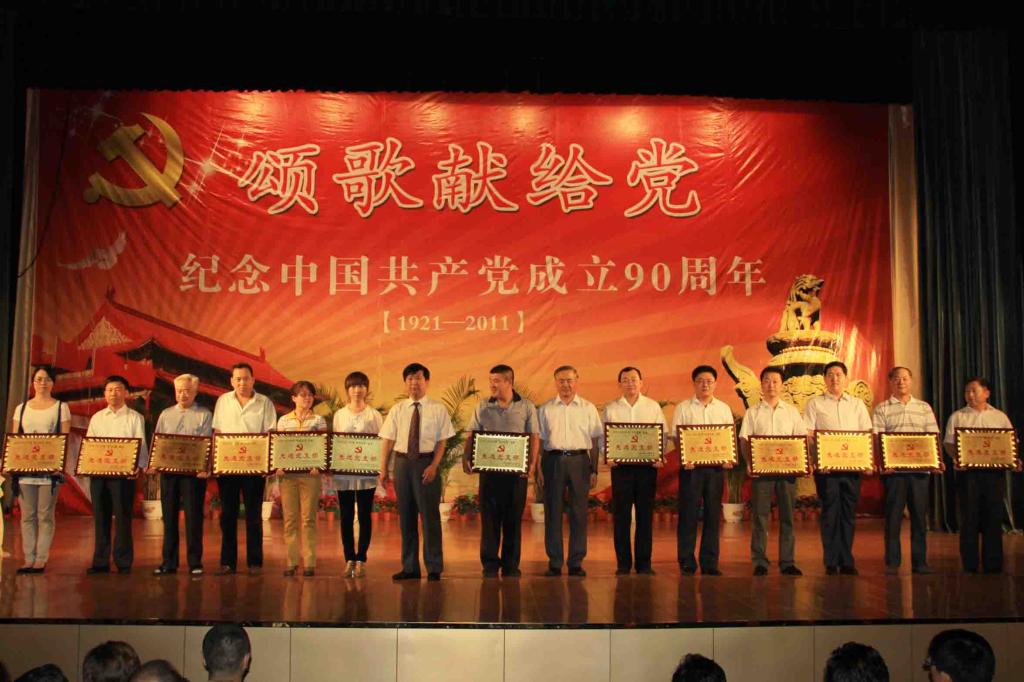 党委副书记郑永奎宣读了《关于表彰2009—2011年度先进基层党组织、优秀共产党员、优秀党务工作者的决定》;与会校领导分别为创先争优活动中涌现出来的先进集体和个人颁发了奖牌和荣誉证书。整场演出以“颂歌献给党”为主题,校领导和各党总支、直属党支部的师生代表陆续登台,通过合唱红歌、单口快板、歌舞表演、诗歌朗诵、红歌串烧等方式表达了欢庆建党90周年,歌颂党、热爱党、热爱祖国的真挚情怀。