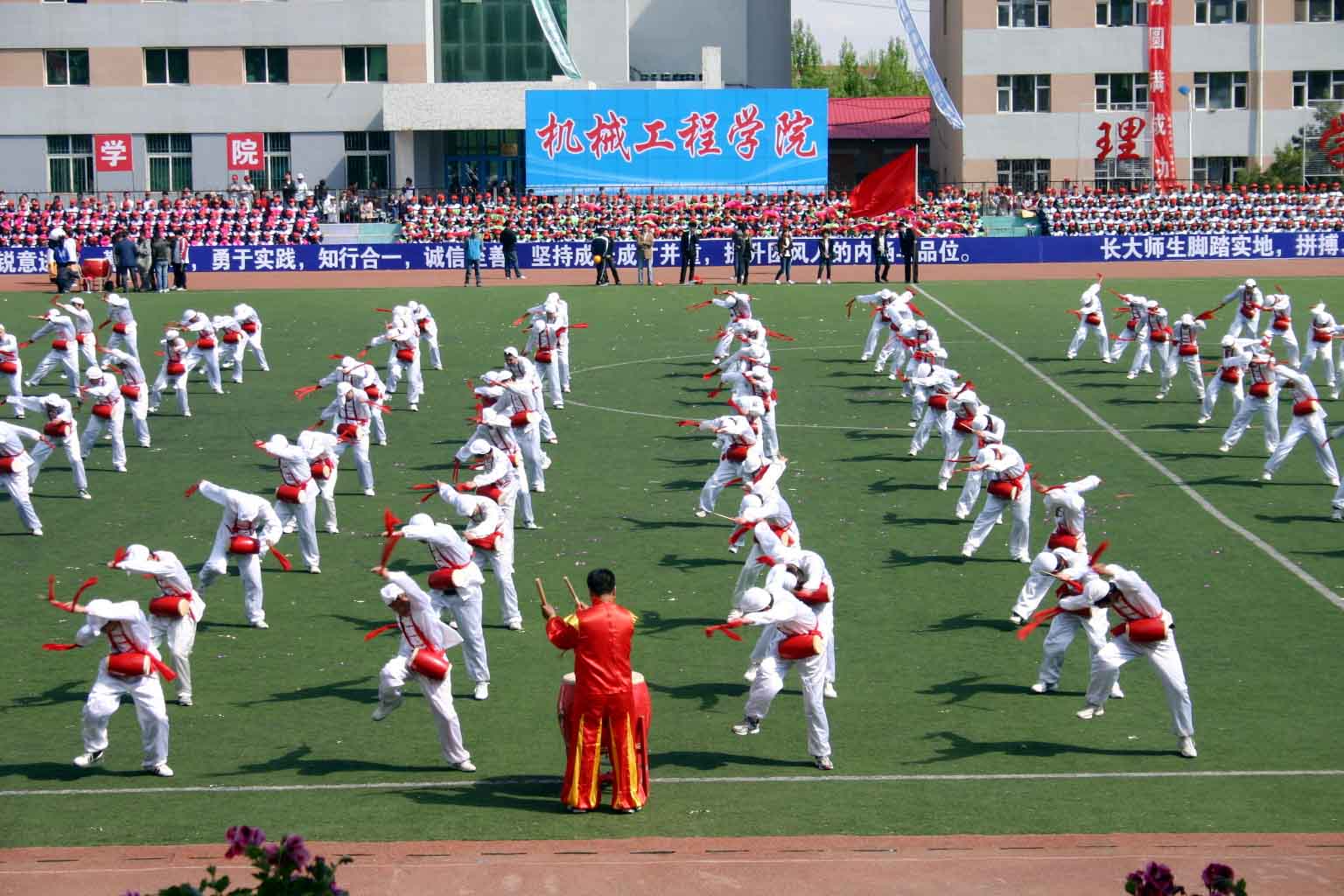 郑永奎宣布运动会开幕,伴随着雄壮的进行曲,各学院代表队迈着整齐的步伐通过主席台接受检阅。运动会总指挥李志瑶致开幕词,她指出:近年来,在学校党委的统一领导下,全校师生员工团结一心,形成了务实高效、风清气正、和谐创新的新局面,教学、科研、学团、后勤、党建等各项工作都有了新发展、新进步。伴随着办学水平的不断提高,学校体育工作呈现出欣欣向荣的局面,形成了一批在全国高校处于领先水平的优势体育项目,取得了一系列优异成绩,展现了长大学子的青春风采,热爱体育、崇尚运动、健康向上的良好氛围充满长大校园。本届运动会的隆重举行,将为全校同学提供了一个展示体育竞技水平和精神风貌的舞台,让大家在竞争中体验运动的快乐,在参与中挥洒青春的激情。