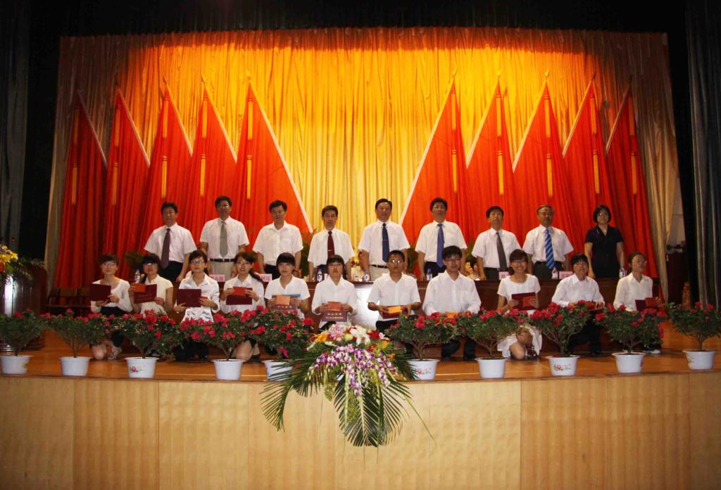 学校领导为优秀毕业生颁发证书和奖品