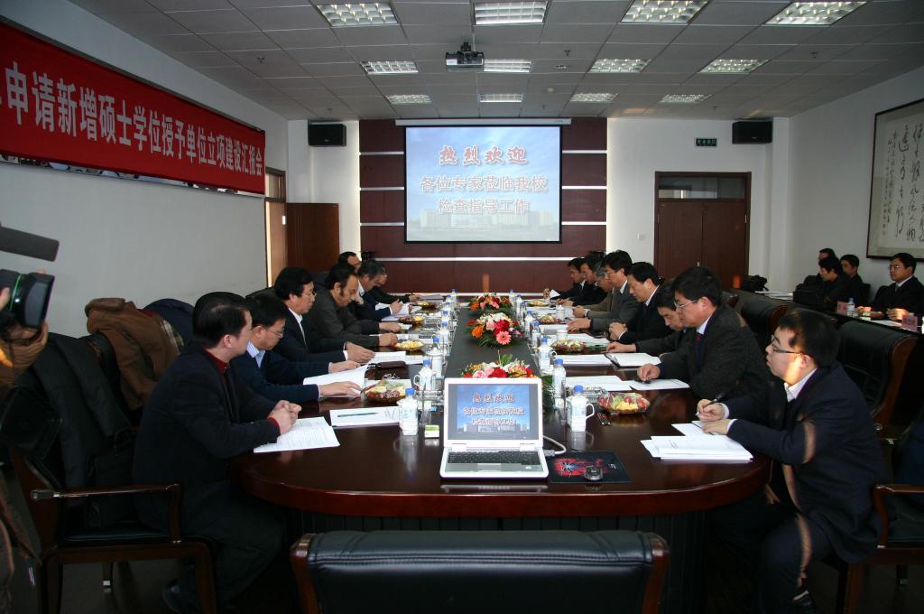 12月24日,吉林省学位办戚欣主任和由吉林大学吴振武副校长、教授、博士生导师,长春理工大学原校长姜会林教授、博士生导师,长春中医药大学刘岩宏副校长、教授、博士生导师,东北师范大学研究生院副院长饶从满教授、博士生导师,吉林大学化学学院副院长李耀先教授、博士生导师,吉林大学公共外语教育学院院长战菊教授、博士生导师,专家组秘书东北师范大学研究生院学位办任增强副主任组成的专家组,省学位办副调研员宋辉和秘书闻博一行对我校申请“新增硕士学位授予单位立项建设”工作进行检查指导。吉林省“长春大学新增硕士学位授予单位立项建设”汇报会在学校综合楼B区705会议室召开,校党委书记朱勇征,校长潘福林,党委副书记陈忠礼,副校长庄树范、史美君、李占国,纪委书记王忠及学校相关部门负责人和学科带头人参加了汇报会。