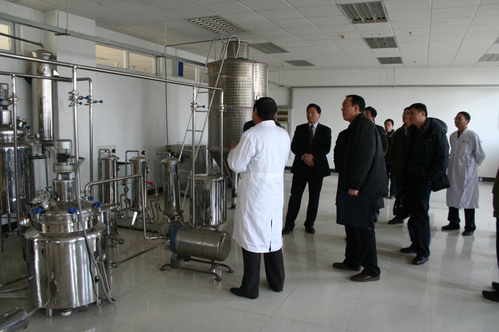 食品科学与工程学科高长城教授向专家介绍大豆油脚连续提取中试生产线