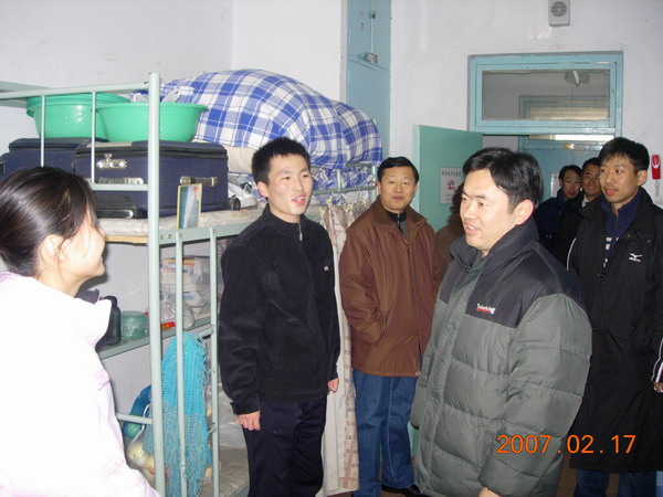 2007年2月17日,农历大年三十,学校领导宗占国、陈忠礼、门树廷、王忠在学校办公室、学生处、团委、保卫处、后勤总公司等部门领导的陪同下走访了学校值班室、医院、运输公司、学生公寓、食堂、水暖班、电工室,慰问坚守在工作岗位上的一线职工。学校领导对他们在节日期间坚守工作岗位表示感谢,并代表学校对他们和家属表示良好的祝愿和衷心的祝福。在学生宿舍,学校领导看望了在校过节的学生,为他们送去了糖果,备好了年夜饭,并为学生提供了电视,使他们在学校能收看到春节联欢晚会的节目,保证他们度过一个安乐祥和的春节。