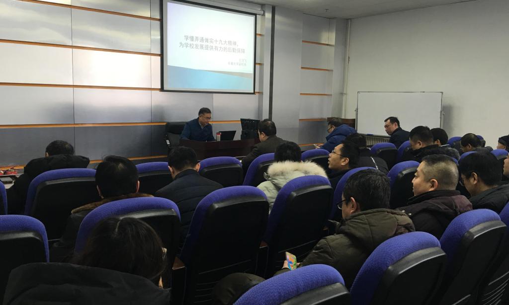 1月10日上午,副校长王剑飞以《学懂弄通做实十九大精神,为学校发展提供有力的后勤保障》为题在综合楼B区701会议室为后勤党总支全体党员上了一堂党课。党课由后勤党总支书记王庆时主持。党课上,王剑飞从“强化‘四个意识’,坚持用习近平新时代中国特色社会主义思想武装头脑”“强化党章意识,切实发挥基层党组织和党员作用”“坚持知行合一,以求真务实的作风做好后勤保障工作”三个方面结合我校后勤工作实际,对学习宣传贯...