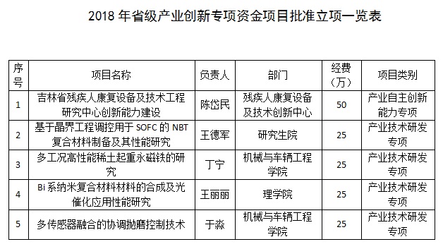 近日,省发改委公布了2018年省级产业创新专项资金项目(高技术产业部分)评审结果,我校获批产业自主创新能力专项1项、产业技术研发专项4项,共计批准立项5项,总资助经费150万元。此批项目是我校在省发改委年度立项获资助经费总额及项目数均为最多的一次。此次省级产业创新专项的成功立项对提高我校教师科研能力、提升科研素质、激发科研热情具有积极的推动作用