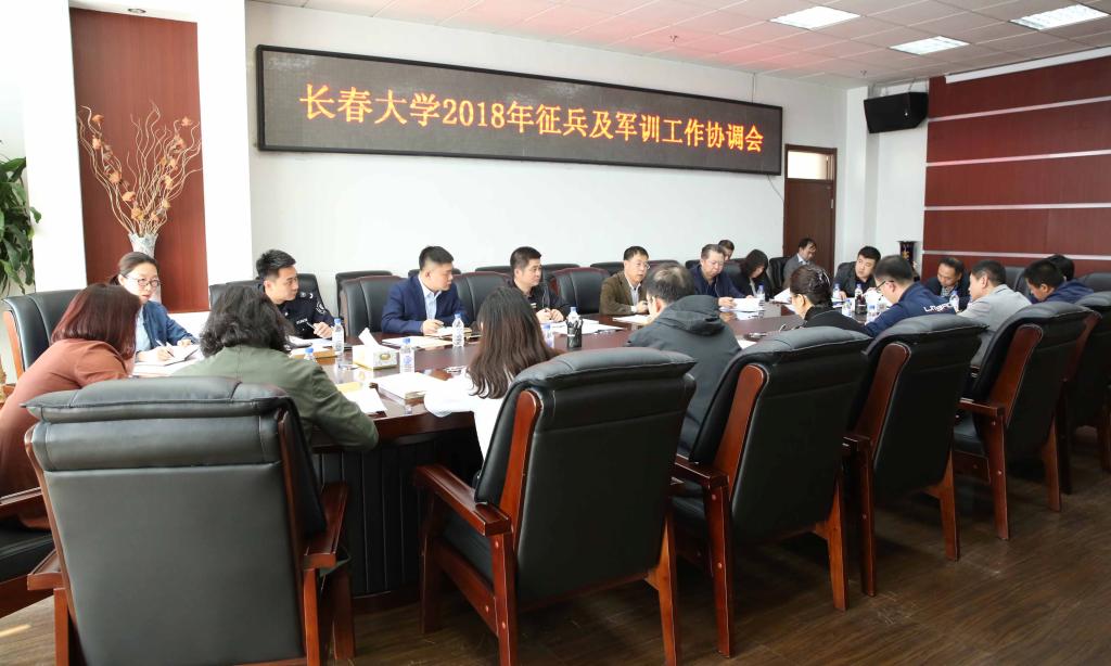 4月28日上午,学校在综合楼B区705会议室召开长春大学2018年征兵及军训工作协调会。会议由党委副书记童猛主持。会上,学校武装部部长马东辉传达了吉林省人民政府征兵办公室和吉林省教育厅下发的《二〇一七年度高校征兵工作量化考评通报》(吉征联[2018]17号)精神,并对《2018年大学生应征入伍工作实施方案》和《长春大学2017级学生军事技能训练计划》进行了解读。同时,对今年征兵和军训工作进行了部署和安排。童猛对学校2017年...