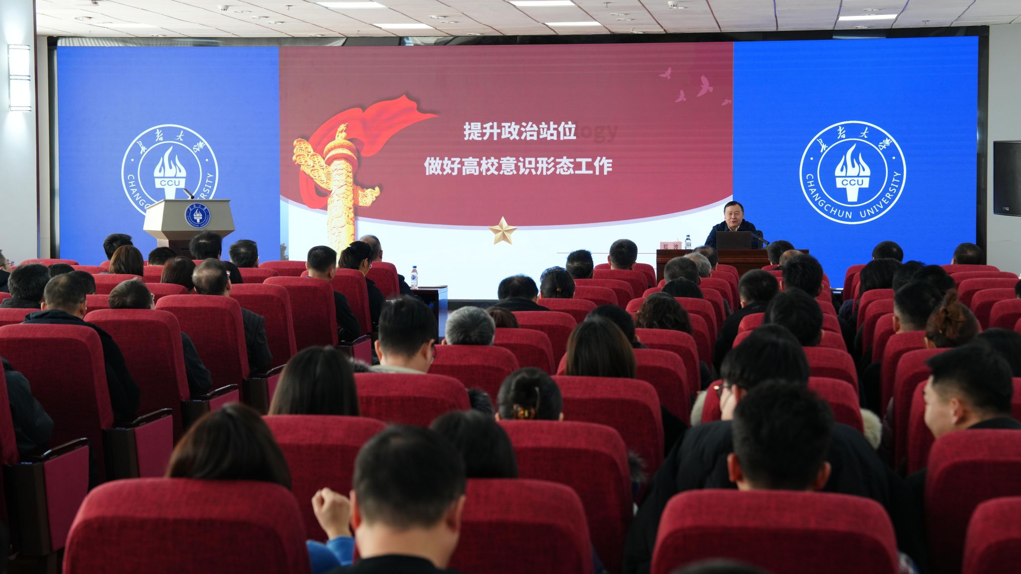 1月9日,学校举行意识形态专题培训报告会。学校领导,全体正处级干部,辅导员及学生工作部、研究生工作部、安全部有关人员,网络评论员代表等参加会议。报告会由学校党委副书记巩英春主持。会上,《新长征》杂志社社长郑波教授以《提升政治站位,做好高校意识形态工作》为题作专题报告。他结合自身深厚的理论积淀和丰富的实践经验,重点围绕意识形态工作的极端重要性、当前形势特点、舆情风险防范等方面作了系统阐述和深入解读。报告既有理论高度,....